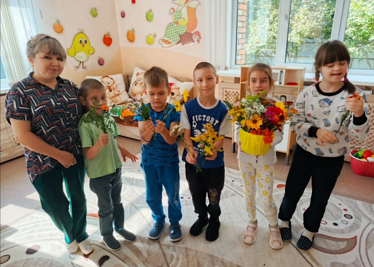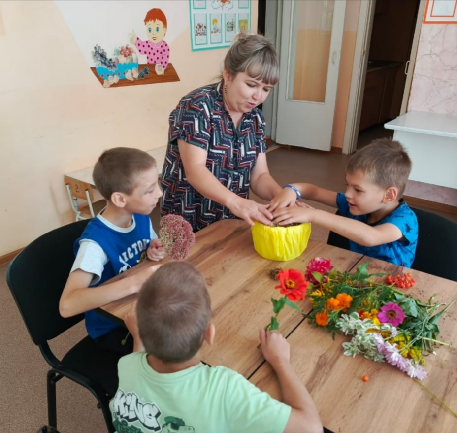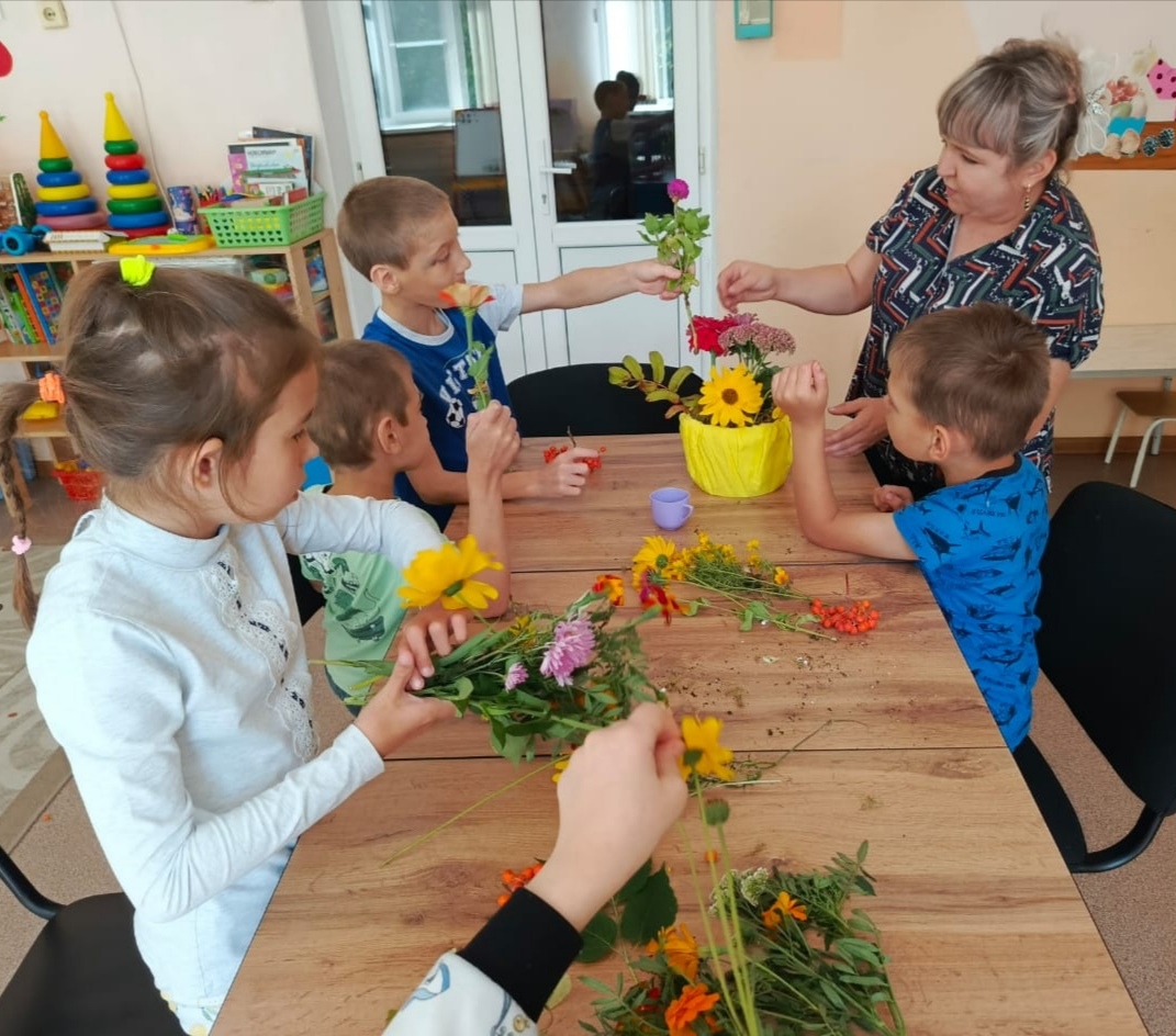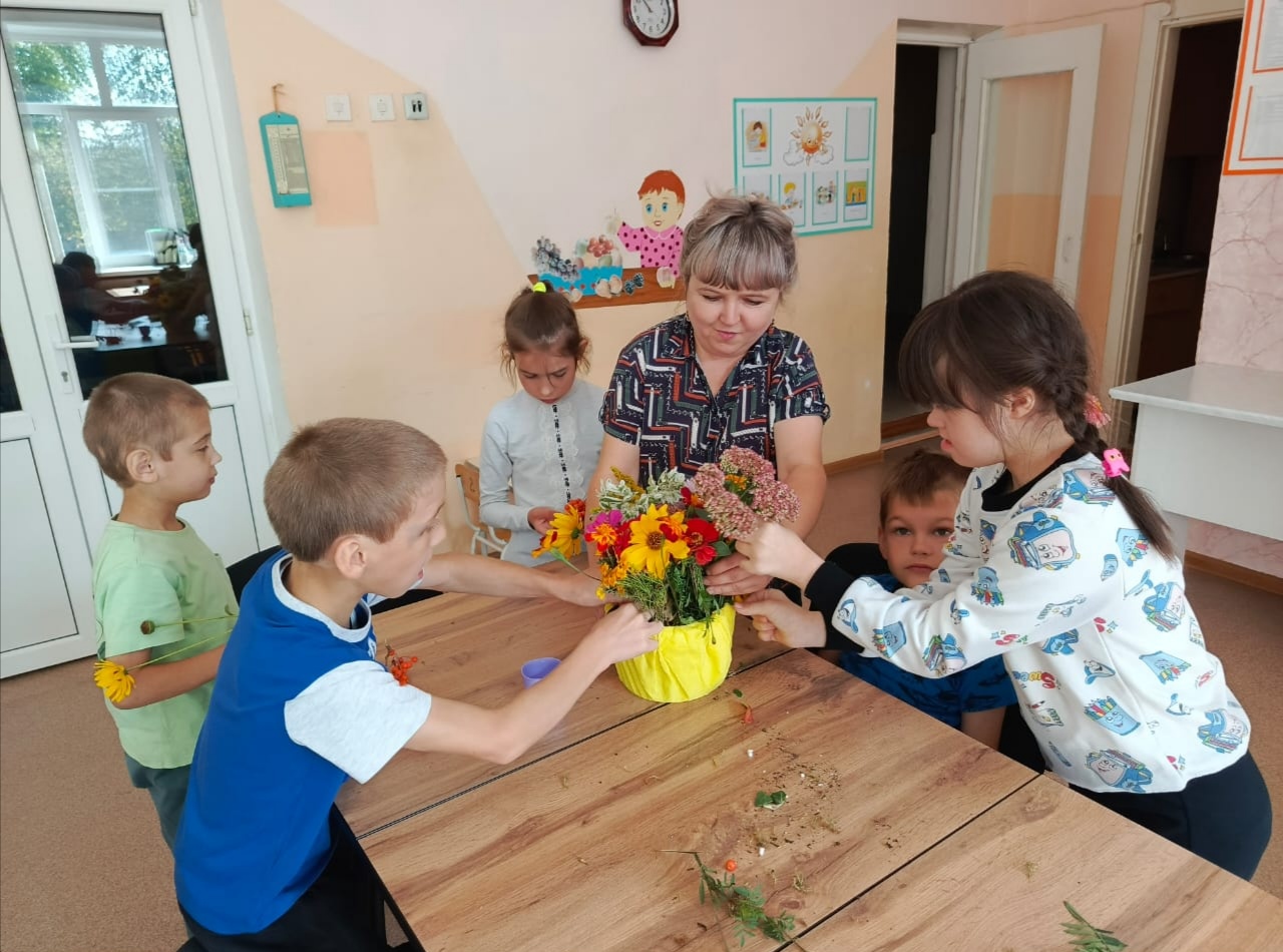 Вот с таких прекрасных стихотворений началось утро в Кузнецком филиале ГБУ ССЗН "Областной социально-реабилитационный центр для детей и молодых инвалидов". Наступила осенняя пора! Сколько различных красок в ней сочетается. Природа богата яркими красками. Гуляя на территории учреждения, воспитатель Асанова Гузель Гаясьевна с воспитанниками рассматривали яркие цветы, разноцветные листочки. И возвращаясь в группу с прогулки, захотелось взять с собой частичку этой осенней красоты. Глядя на все это великолепие, пришла идея — создать осеннюю композицию. Икебана (экибана) – традиционное японское искусство по составлению композиций из цветов. В переводе на русский «икебана» — это «живые цветы». Однако при составлении букетов используются не только цветы, но и любые другие природные материалы, главное, чтобы компоненты гармонировали друг с другом. Такое занятие не только способствует развитию моторики и координации, но и учит детей замечать красоту окружающего мира. Осенний букет, собранный ребятами, наполнил группу теплом и радостью, создав уютную атмосферу. Вот такой букет у нас получился!