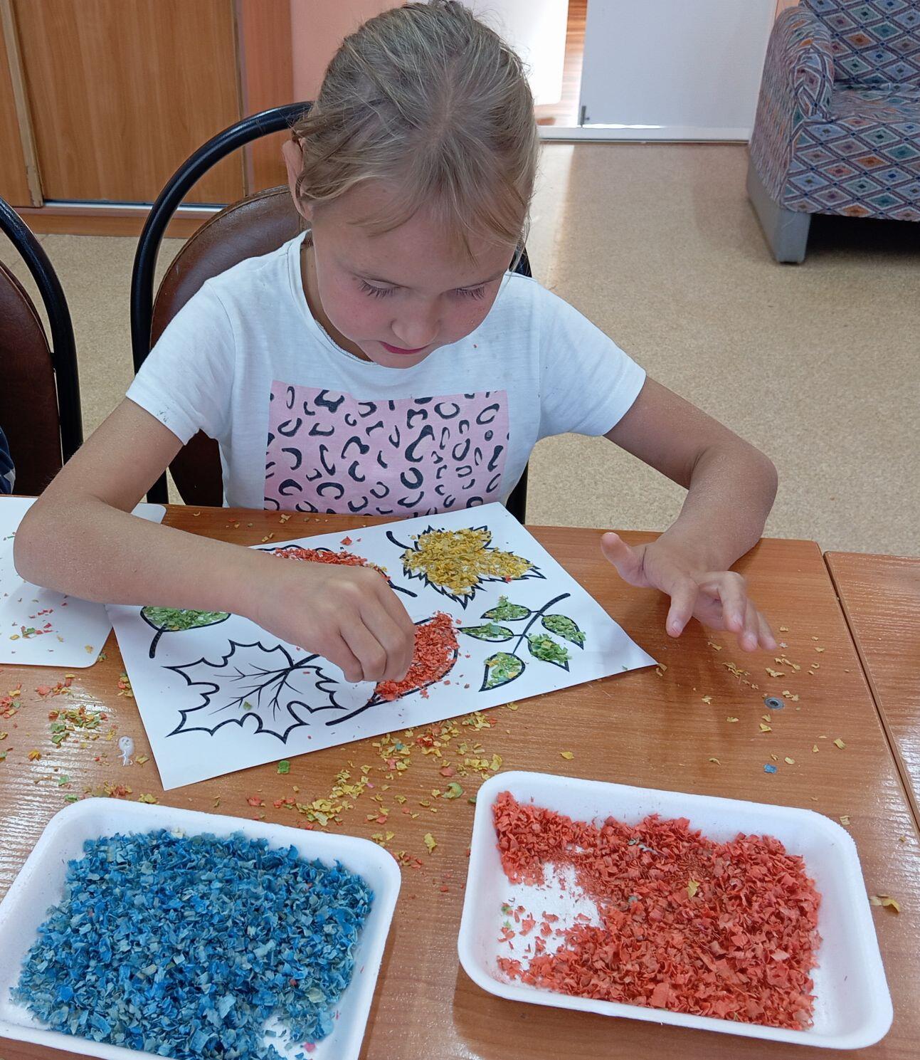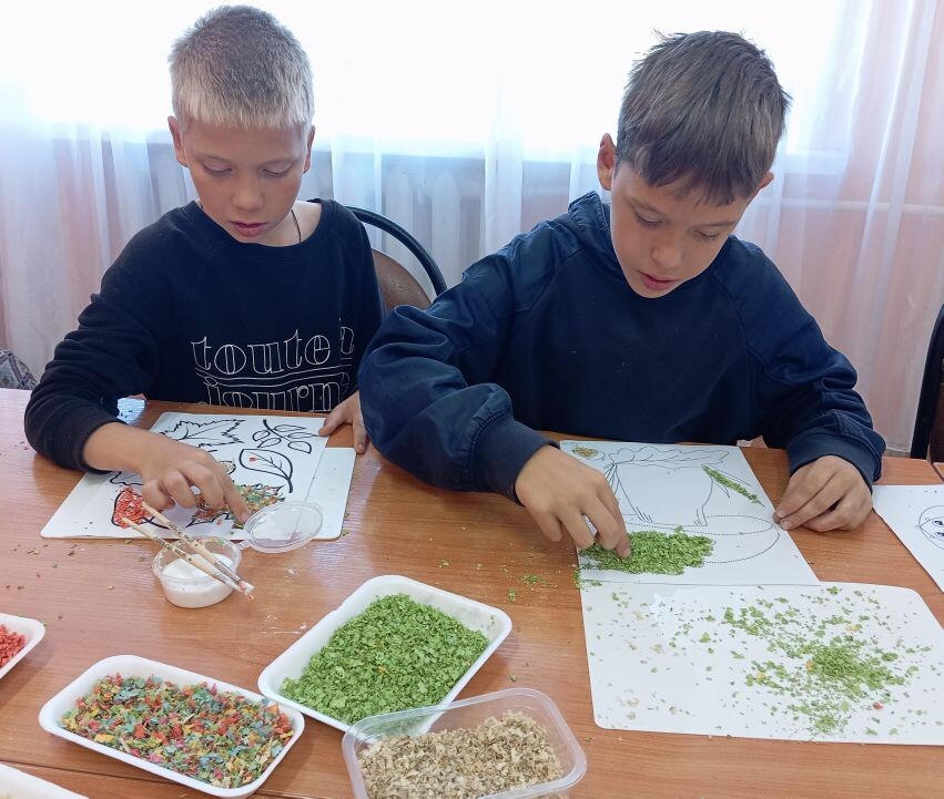 Нетрадиционные изобразительные техники – это эффективное средство выражения, включающее новые художественно-выразительные приемы создания художественного образа, композиции и колорита, позволяющие обеспечить наибольшую выразительность образа в творческой работе, чтобы у детей не создавалось шаблона. Используя нетрадиционные техники рисования, происходит развитие мышления, воображения, фантазии и творческих способностей. Воспитанники отделения социального приюта приняли участие в мастер-классе по нетрадиционной технике рисования цветными опилками. Материал прост и совершенно экологичен, опилки разных размеров можно легко приготовить самостоятельно в любом количестве. Опилки можно окрасить в любой цвет. Присоединяйтесь к нам!
