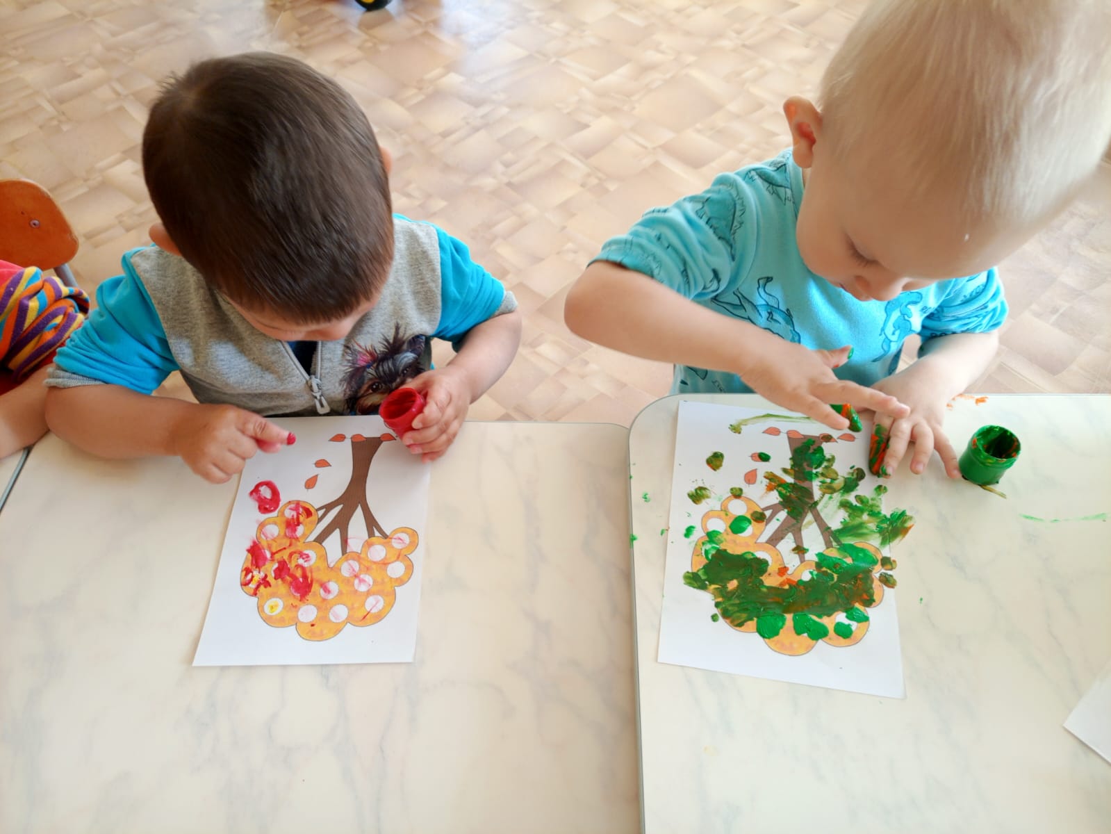 Как хороши осенние деньки! Малыши Кузнецкого филиала вместе с воспитателем Тороповой Еленой Юрьевной отправились на прогулку. Понаблюдали, как меняется погода, как деревья сменяют свой зеленый наряд на пестрый осенний, рассматривали листочки. Решили перенести яркие краски осени на бумагу. Юные художники, вооружившись красками, создали замечательные работы в нетрадиционной технике — пальчиковое рисование. «Осеннее дерево» получилось ярким и красочным!