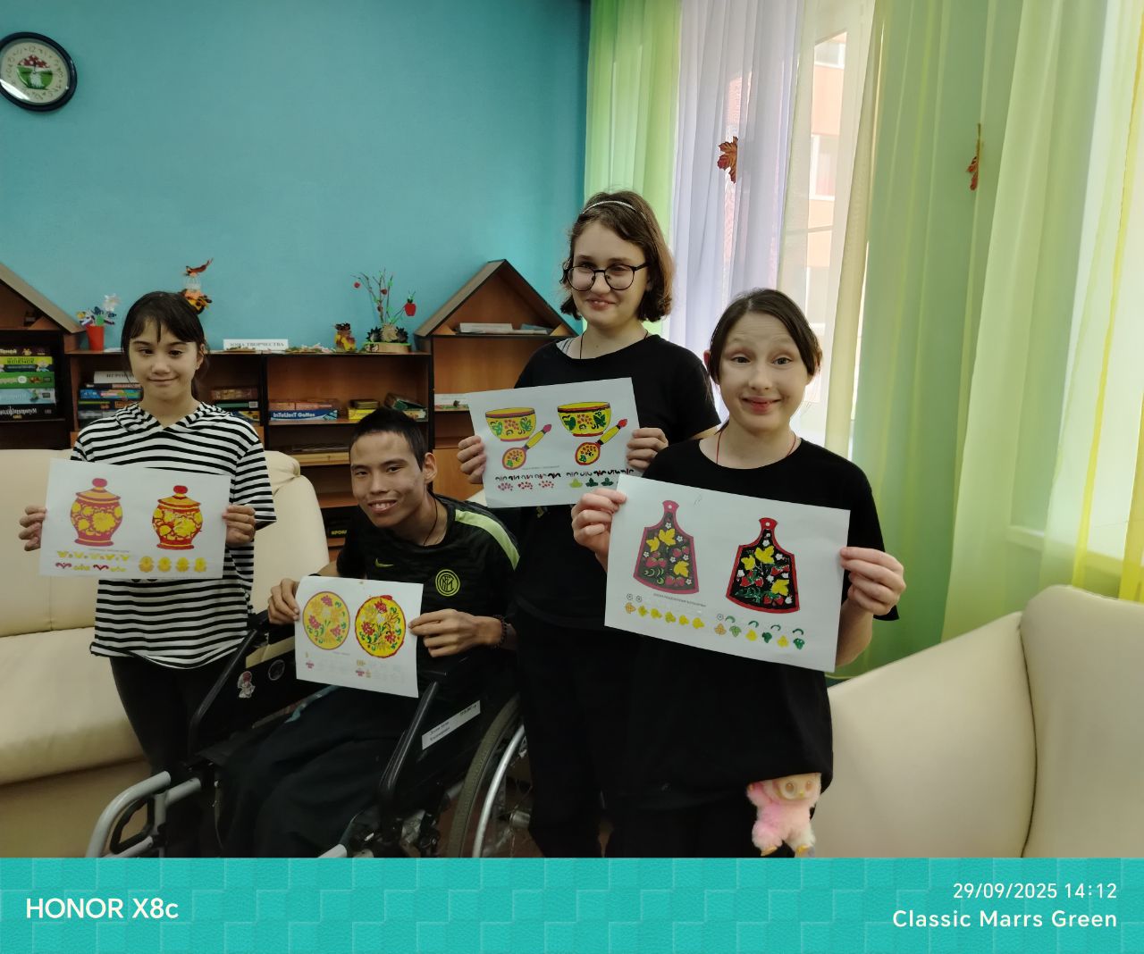 Сегодня в отделение для детей с особенностями развития прошло занятие по декоративному рисованию, посвящённое одному из самых ярких и популярных промыслов народного искусства России - Хохломская роспись. Дети узнали, что такое Хохлома, историю её возникновения, рассмотрели изделия хохломской росписи и сами попробовали нарисовать. Работали ребята заинтересованно и старательно. И с удовольствием рассматривали полученные работы. Дети были довольны результатом своей деятельности!
