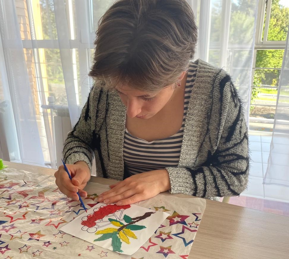 В отделении сопровождаемого проживания оживленно и красочно прошло занятие по пластилинографии "Краски осени". Участники с увлечением создавали объемные картины, используя яркие оттенки пластилина, чтобы передать всю красоту осенней поры. Под чутким руководством специалистов ребята воплощали свои творческие идеи, создавая неповторимые пейзажи с золотыми листьями, багряными деревьями и тихой прохладой осеннего леса. Занятие не только развило мелкую моторику и творческое мышление, но и подарило участникам массу положительных эмоций и вдохновения, позволив почувствовать себя настоящими художниками. Готовые работы стали украшением отделения, напоминая о ярких красках осени и безграничных возможностях творчества.
