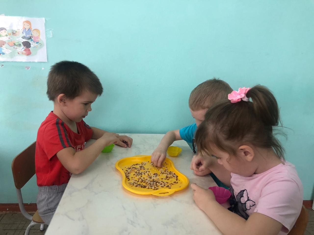 Сегодня в Кузнецком филиале, воспитанники из отделения с особенностями развития вместе с воспитателем Филимоновой Кадрией Мунировной решили навести порядок в центре экспериментирования. Достали все крупы и что же увидели. Многие из них оказались перепутанными. И решили поиграть в игру «Золушка». Все ребята превратились ненадолго в Золушку и сели перебирать крупы. Круп было 3 вида: горох, фасоль, гречка. Труднее всего конечно выбирать гречку, так это самая мелкая крупа, но дети легко справились с этим заданием. А чтобы процесс игры был интереснее, решили его разнообразить. Нужно было отсчитывать по 10 штучек каждой из круп и складывать их в разные тарелочки. Ребята вспомнили сказку «Золушка». Поотгадывали загадки к этой сказке, вспомнили всех главных героев. Казалось бы простая уборка, а столько пользы. И сказку вспомнили и потренировали мелкую моторику, повторили счет до 10, а еще память, внимание, мышление и воображение.