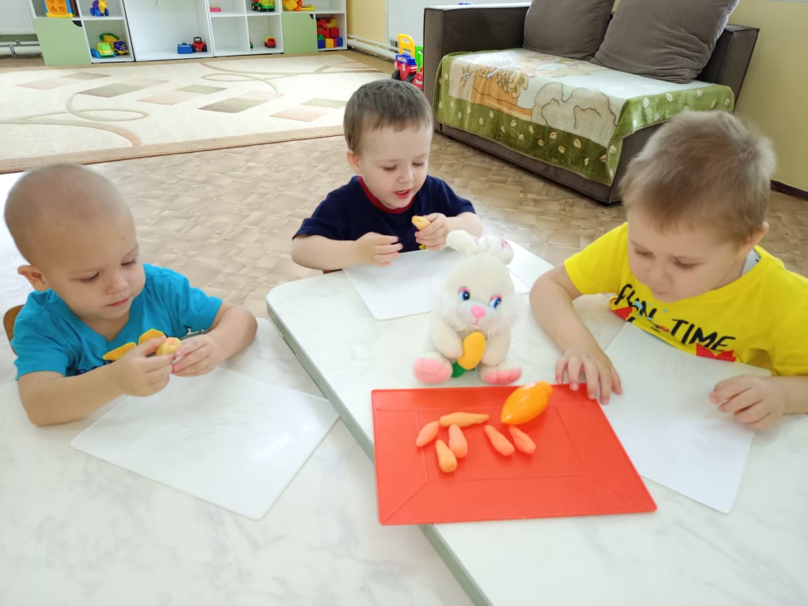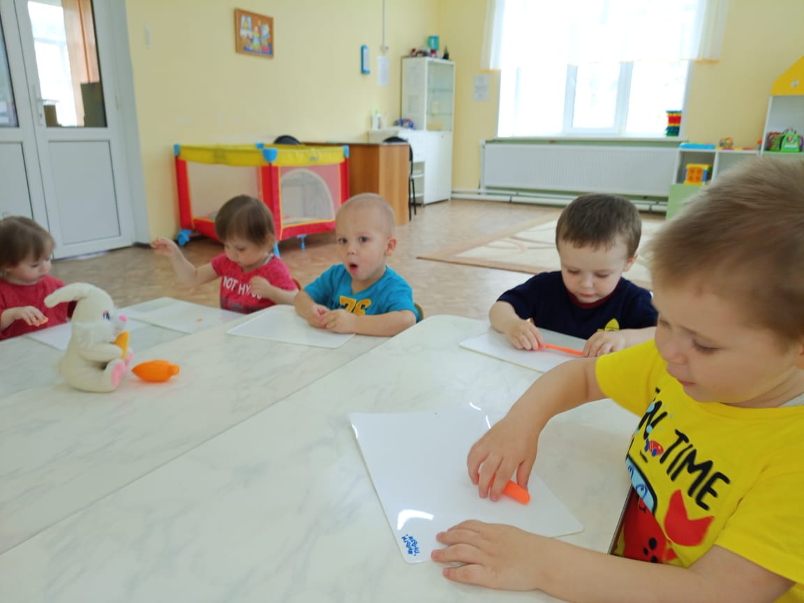 В гости к малышам в отделение с особенностями развития Кузнецкого филиала прибегал Зайчик! Но он был немного грустным. И как он рассказал, у него случилась беда! Пошел Зайка в огород, чтобы нарвать своим зайчатам вкусной, сладкой морковки, и оказалось, что морковка еще не выросла. Что же делать? Зайка попросил помощи у малышей и воспитателя – слепить морковку для зайчат, которые ждут его в лесу. Ребята с удовольствием помогли зайчику. Малыши аккуратно отщипывали кусочки пластилина, затем разминали и скатывали их в колбаски. Далее ребята приплющивали один конец, чтобы получился острый кончик моркови. Ребята старались изо всех сил и теперь зайчик доволен и сыт. На прощание дети спели песенку про зайчика. А вечером посмотрели мультфильм, где наш гость был главным героем. Такие занятия не только развивают мелкую моторику и творческие способности детей, но и дарят им море позитивных эмоций.