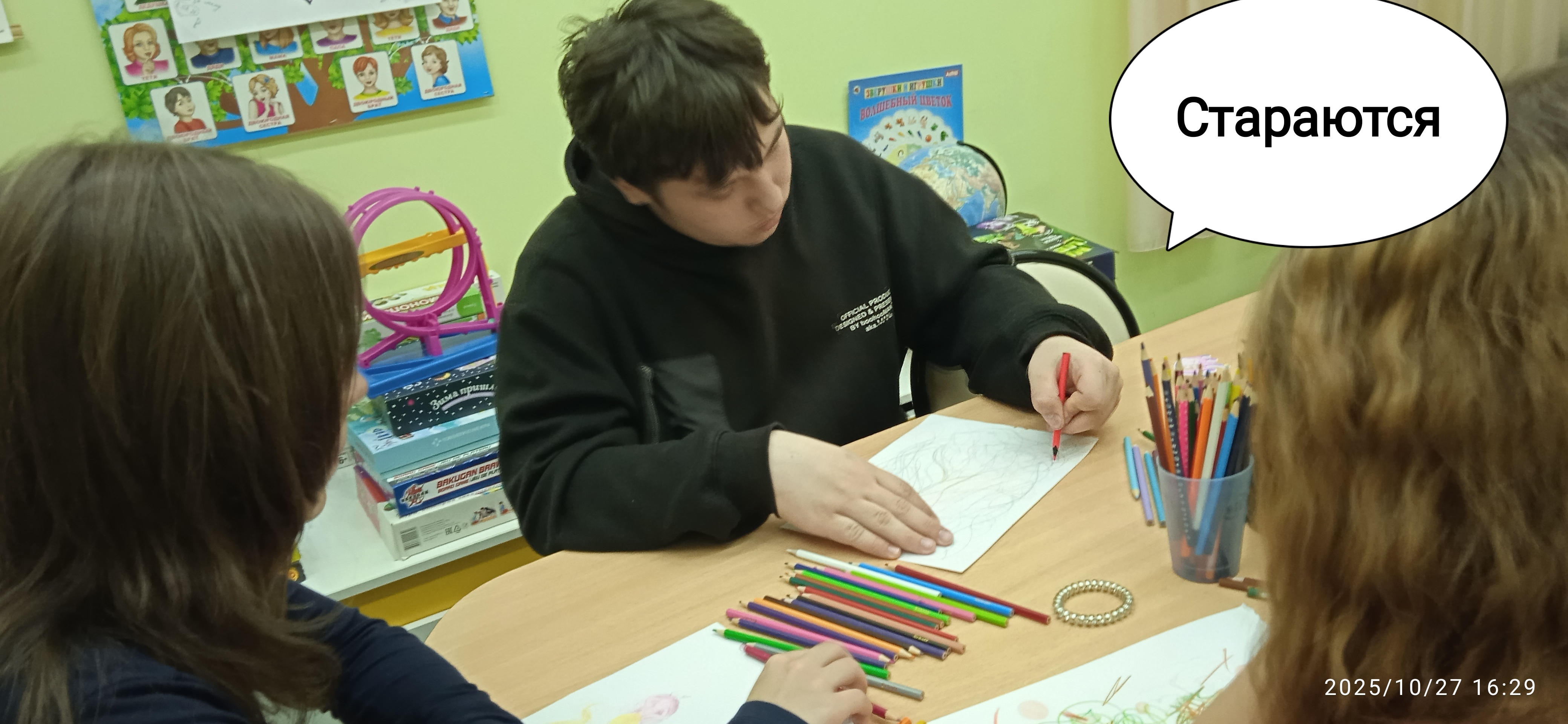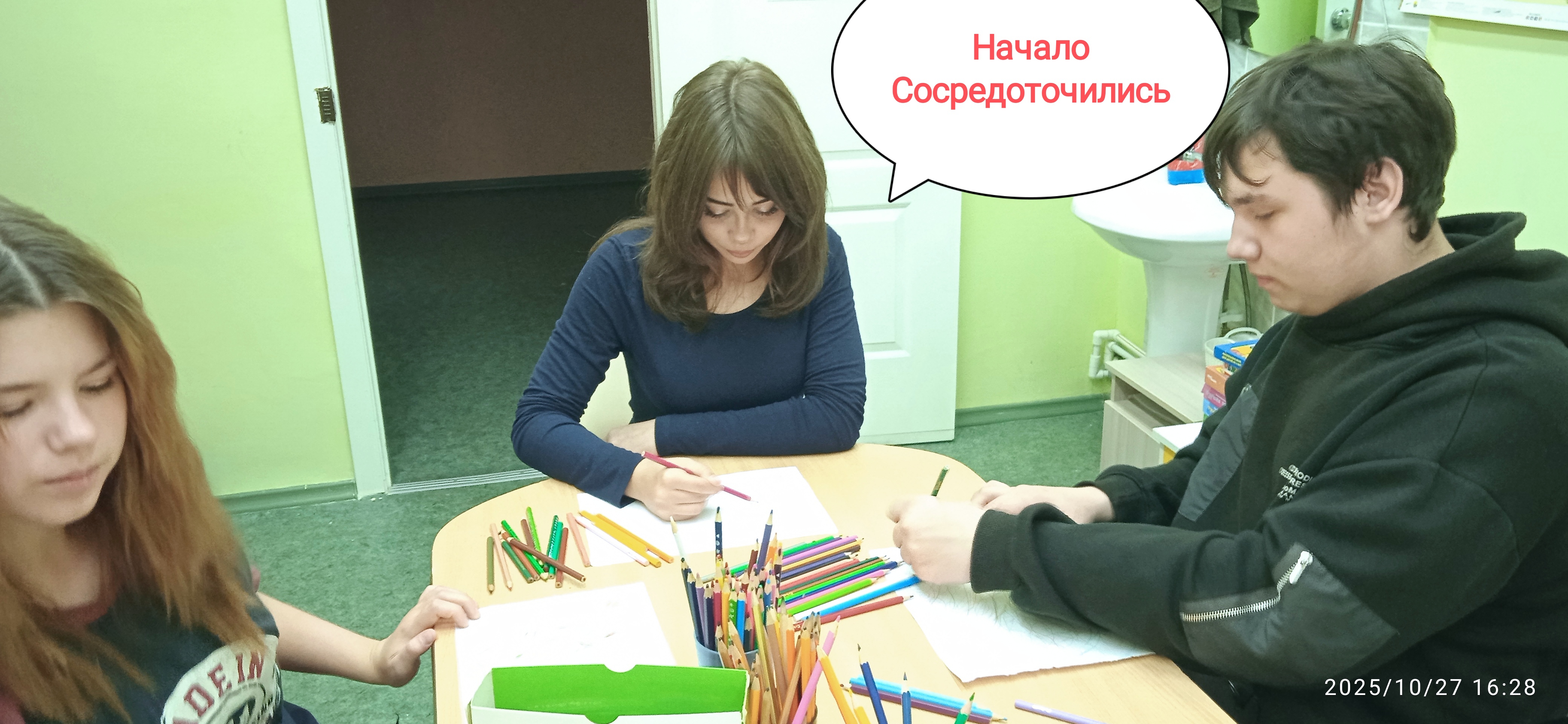 Не секрет, что порой легче нарисовать, чем сказать. А в подростковом возрасте нехватка слов особенно чувствуется. С детьми стационарного отделения педагогом-психологом С.В. Блощененко было проведено интересное занятие с использованием арт-терапевтической методики «Мы – художники моего «Я», направленной на изучение самопонимания, рефлексивных и эмпатийных способностей подростков. Участники занятия сначала рисовали свое состояние на чистом листе бумаги, затем передавали рисунки другим, которые дополняли изображение своими элементами. Процесс передачи рисунков повторялся несколько раз, пока рисунок снова не возвращался владельцу. Эта методика позволила подросткам чуть лучше понять себя и свои чувства и состояния, научиться погружаться в мир чувств другого человека и бережно относиться к нему, а также ценить мнение другого человека о тебе. Подобные упражнения помогают подросткам развить важные жизненные навыки, необходимые для успешного взаимодействия в обществе. Арт-терапия вновь доказала свою эффективность как инструмента, позволяющего разобраться в сложных аспектах человеческого поведения и взаимоотношений.