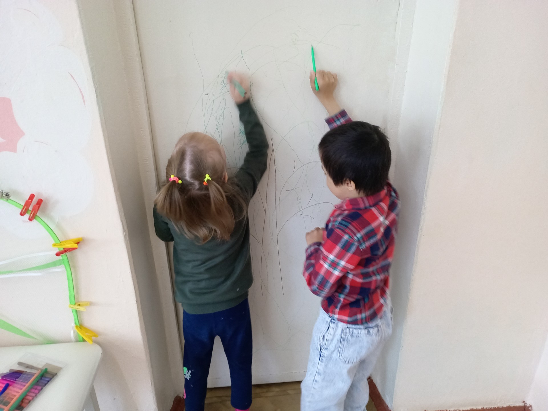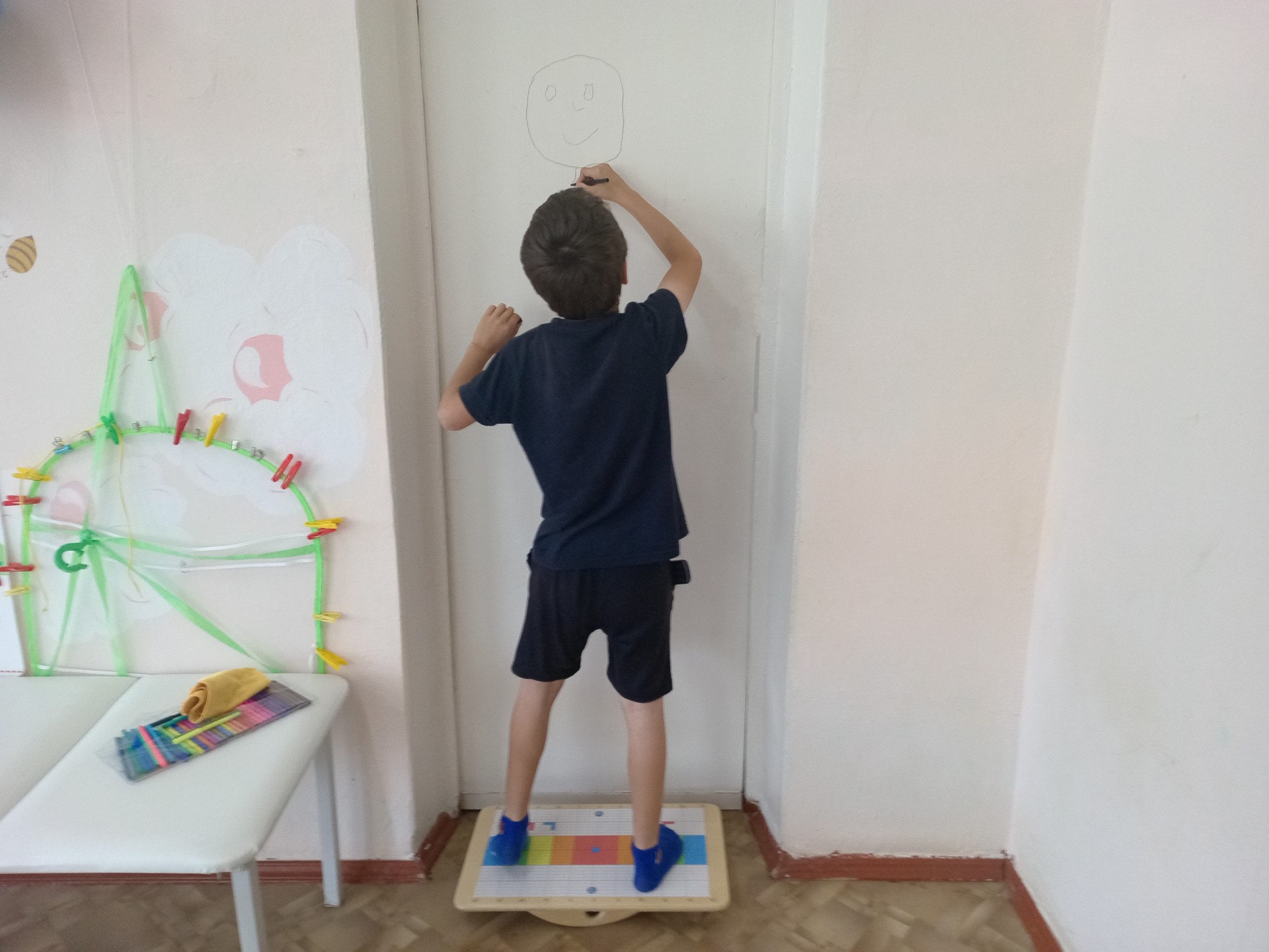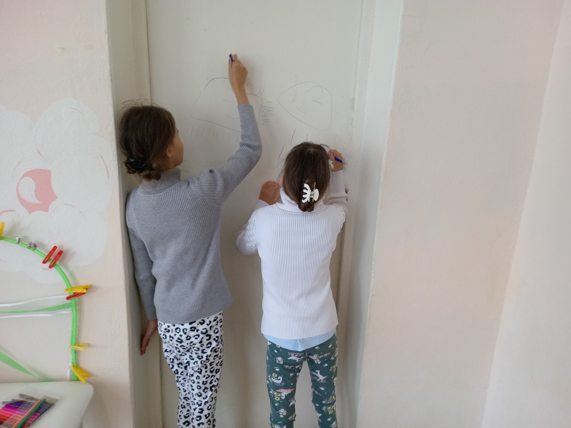 Педагоги Кузнецкого филиала: педагог – психолог Алимова М.Р., учитель – логопед Служаева О.М., учителя – дефектологи Фильева С.А. и Дыбко Н.Г. на своих занятиях используют технику вертикального рисования. Рисование по своей значимости многогранно и велико, оно развивает мелкую моторику рук, формирует пространственные представления. В результате занятий корректируется моторная неловкость, неточность движений, трудности в усвоении двигательной программы. У детей уровень развития речи напрямую зависит от сформированности тонких движений пальцев рук. Движения пальцев рук стимулируют деятельность центральной нервной системы и ускоряют развитие речи ребенка. Рисование на вертикальной поверхности дает детям в совокупности, с развитием прочности и гибкости суставов и мышц и развитии лучезапястного сустава, понятие пространственных представлений (вверх, вниз, вправо, влево, по диагонали и т.д.). Ребенок контролирует положение частей тела в пространстве относительно друг друга (проприоцепция) и удерживает внимание на изображаемом предмете, что довольно непросто. При работе на вертикальной поверхности развивается зрительное внимание и координация у детей, которые испытывают трудности в данной области своего развития. Такие занятия способствуют развитию координации рук и глаз, так как ребёнок имеет чёткое представление о том, что он делает. Одновременное использование обеих рук при рисовании на вертикальной поверхности развивает межполушарное взаимодействие.