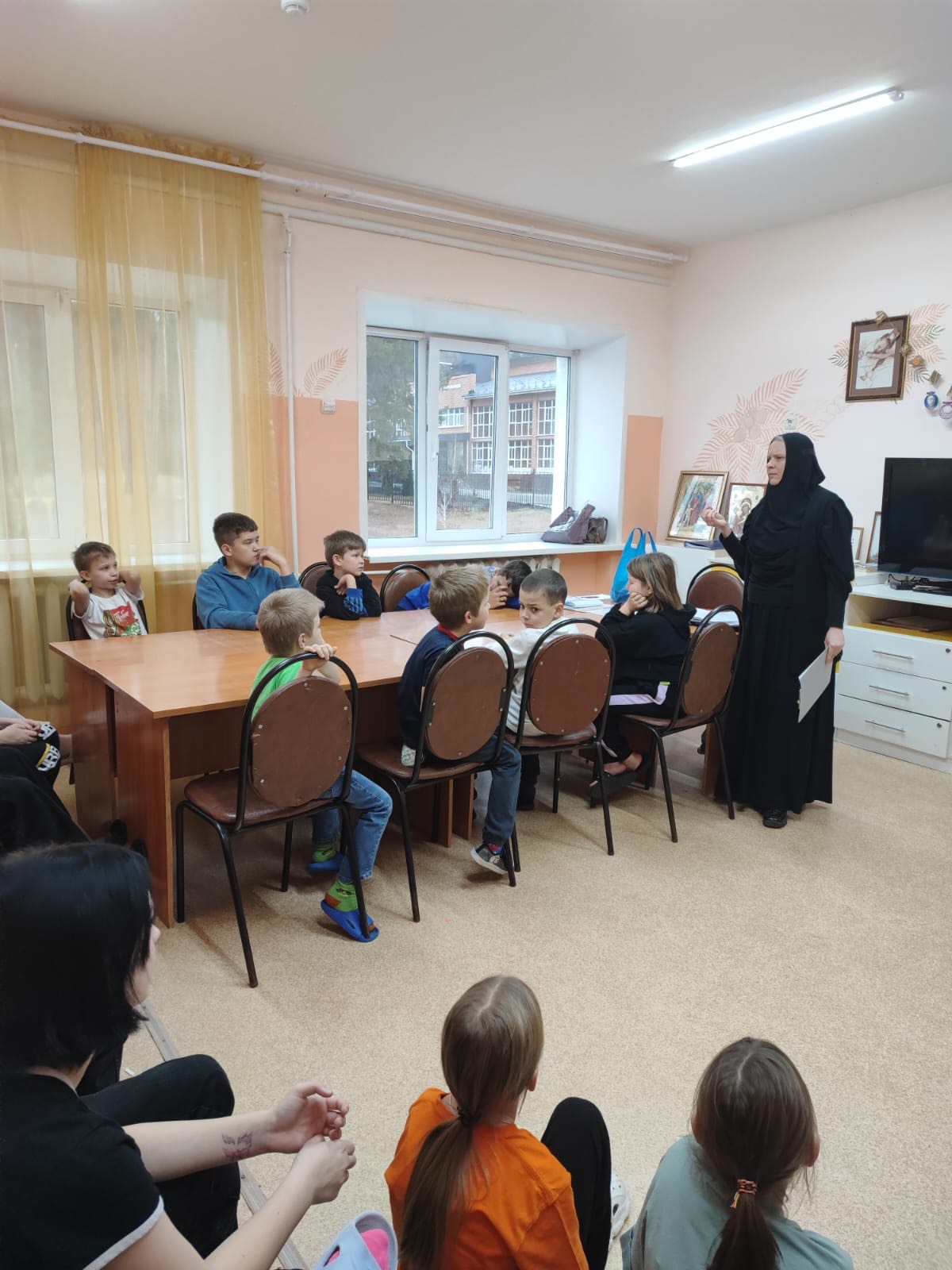С целью развития нравственности, формирования позитивных жизненных ценностей у воспитанников в отделение социального приюта была приглашена Матушка Магдалина из Свято - Троицкого женского Монастыря г. Пензы с программой "Живая вода". Детям в увлекательной форме было рассказано о приоритетных ценностях в жизни, психологическом здоровье ребенка. Воспитанники отделения социального приюта с удовольствием рассуждали о добре и зле, жизни, справедливости и благочестии.