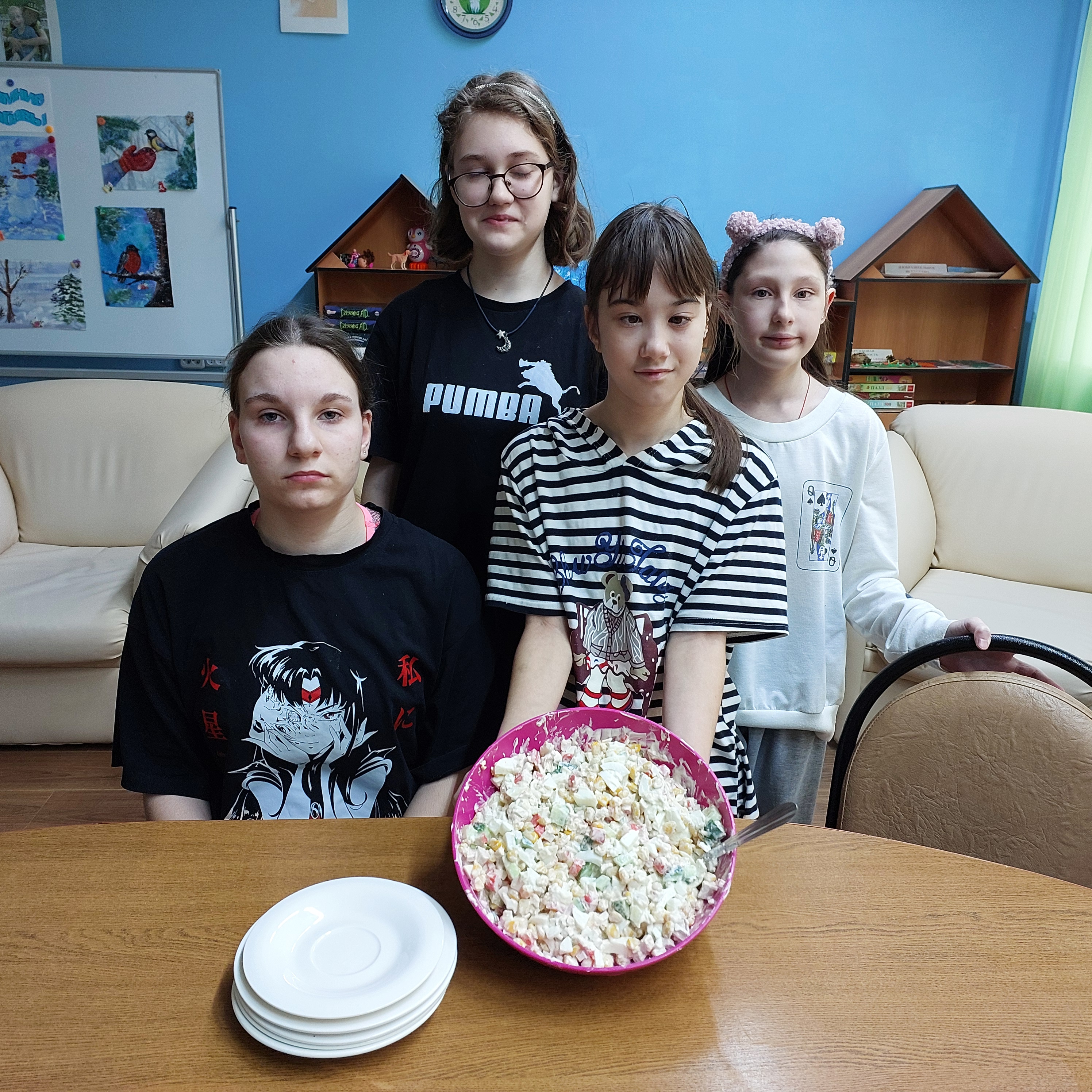 У нас день рождения Нины! Мы по-особенному отпраздновали его. Ребята вместе приняли участие в приготовлении гастрономического сюрприза — салата из крабовых палочек. Обычно праздники проводятся иначе, однако эта затея оказалась невероятно удачной и запоминающейся. Хочется подчеркнуть важность проведения подобных мероприятий для социальной адаптации и эмоционального благополучия воспитанников. Совместное приготовление пищи укрепляет связи между детьми, учит взаимопомощи и уважению друг к другу. С днем рождения, Нина! Желаем тебе здоровья, успехов в учёбе и хороших друзей!
