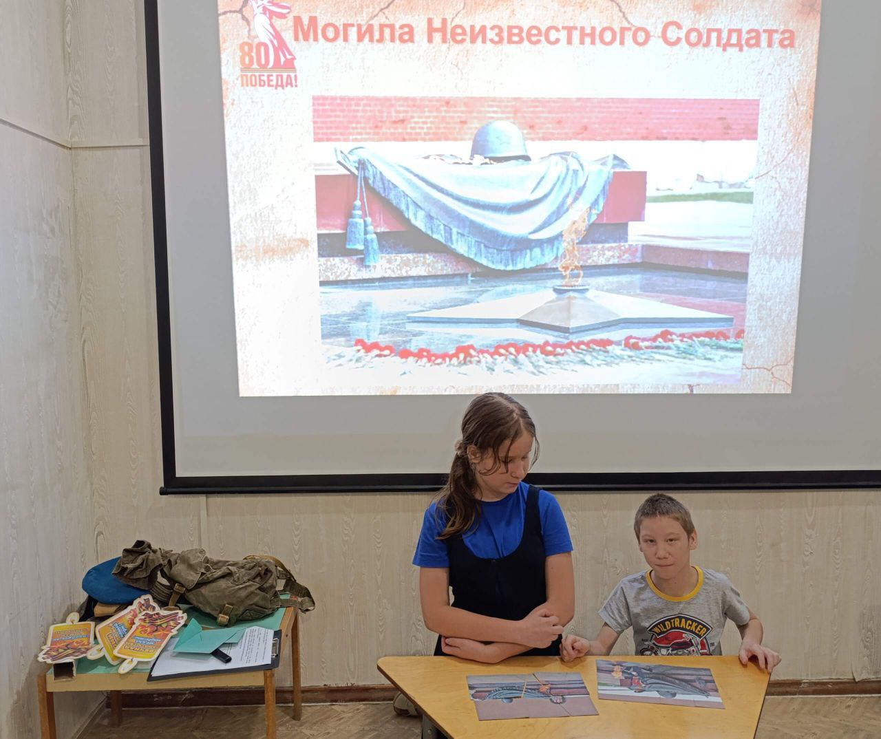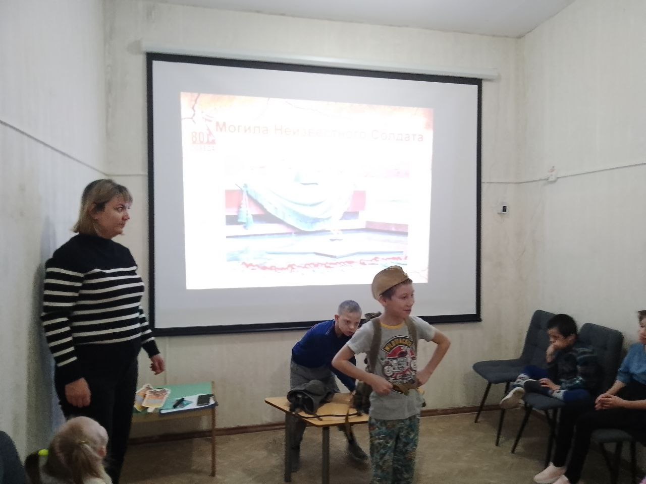 Сотрудники краеведческой библиотеки провели с детьми Кузнецкого филиала мероприятие, приуроченное ко Дню неизвестного солдата. Детям рассказали о том, кто такой «неизвестный солдат», и почему этот день занимает особое место в истории нашей страны. В ходе встречи звучали истории о тех, кто не вернулся с полей сражений, были показаны фотографии памятников и монументов Неизвестному Солдату, установленных в разных уголках России. Особый интерес у ребят вызвали военные музейные экспонаты, которые принесла библиотекарь. Дети смогли примерить настоящий танковый шлем, подержать в руках солдатскую пилотку и голубой берет десантника, рассмотреть армейский вещмешок и походные предметы солдата. Завершилось мероприятие просмотром мультфильма «Солдатская сказка», созданного по мотивам произведения К. Паустовского.
