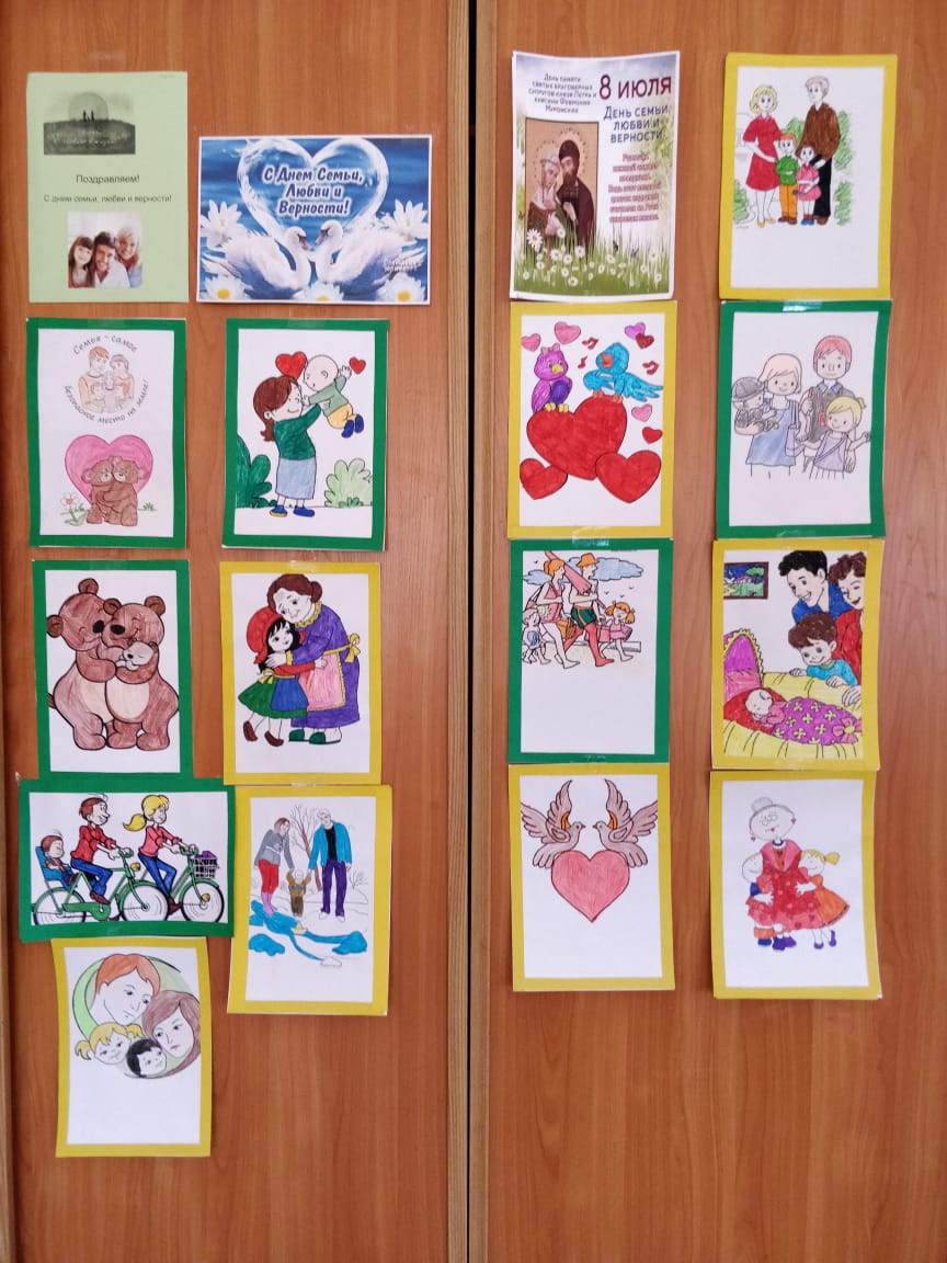 8 июля 2021 года воспитанники отделения социального приюта приняли активное участие в конкурсе рисунков на тему: "Моя семья", посвященном Дню семьи, любви и верности. В своих рисунках юные художники использовали сочные, яркие и теплые краски, очень точно отобразили жизненные моменты, состояние души, находящиеся в гармонии с природой. Большинство ребят нарисовали семью. Все рисунки детей представлены на стенде в отделении.