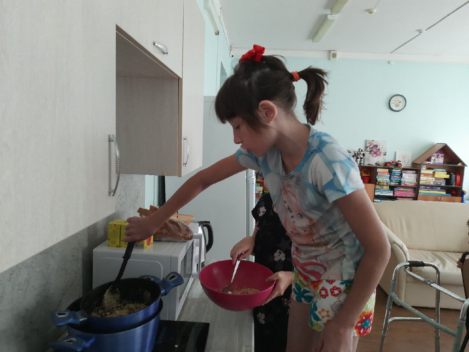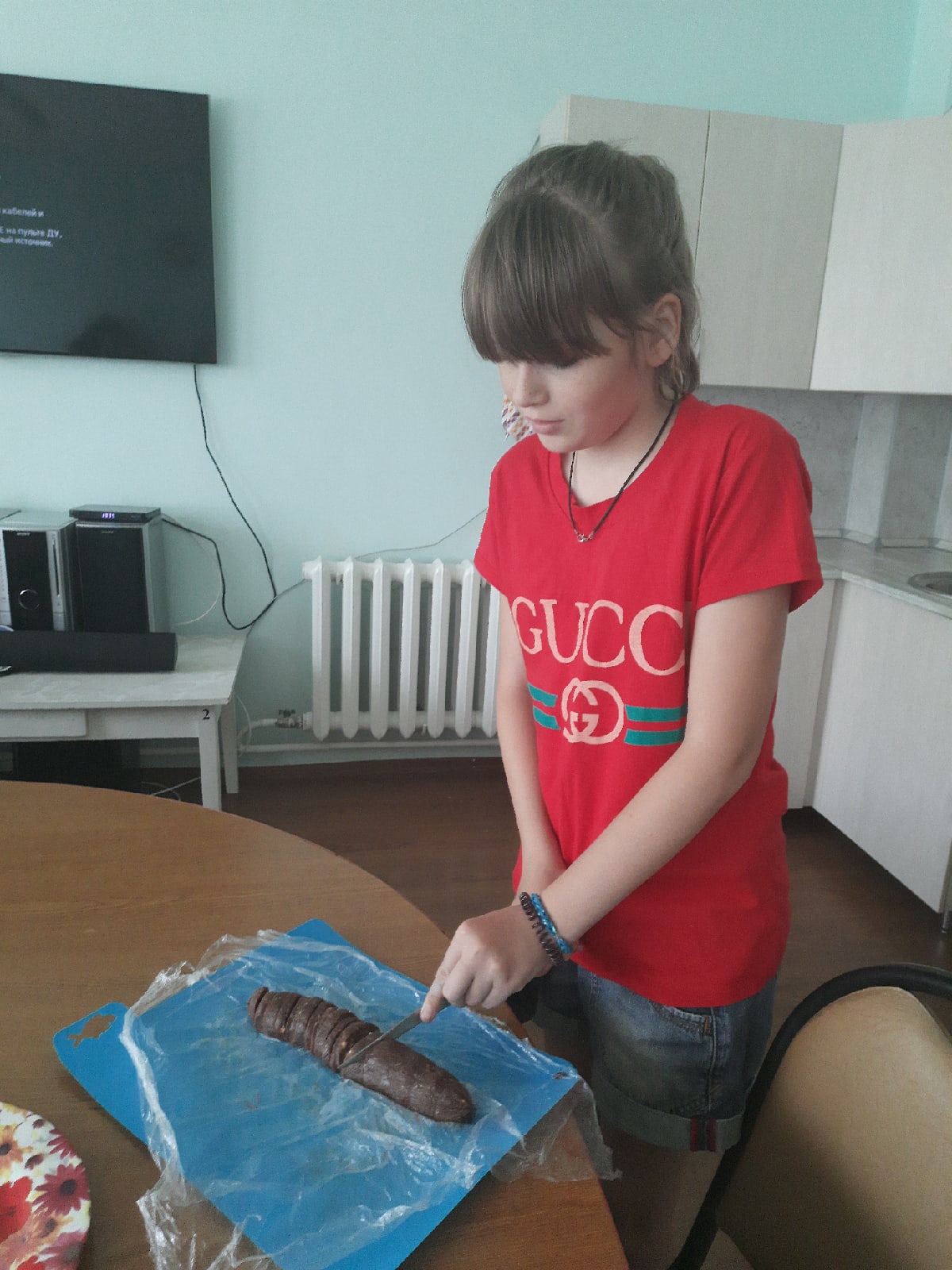 В рамках социально-бытовой реабилитации воспитанники отделения для детей с физическими недостатками готовили десерт "шоколадная колбаса". Целью занятия было научить готовить вкусный, бюджетный и полезный десерт. Ведь не секрет, что в покупных сладостях много вредных добавок. А этот десерт проверен временем и любим еще нашими бабушками. В ходе приготовления дети получили полезную информацию о продуктах, практические умения и навыки пользования ножом и теркой. Мероприятие закончилось совместным чаепитием.