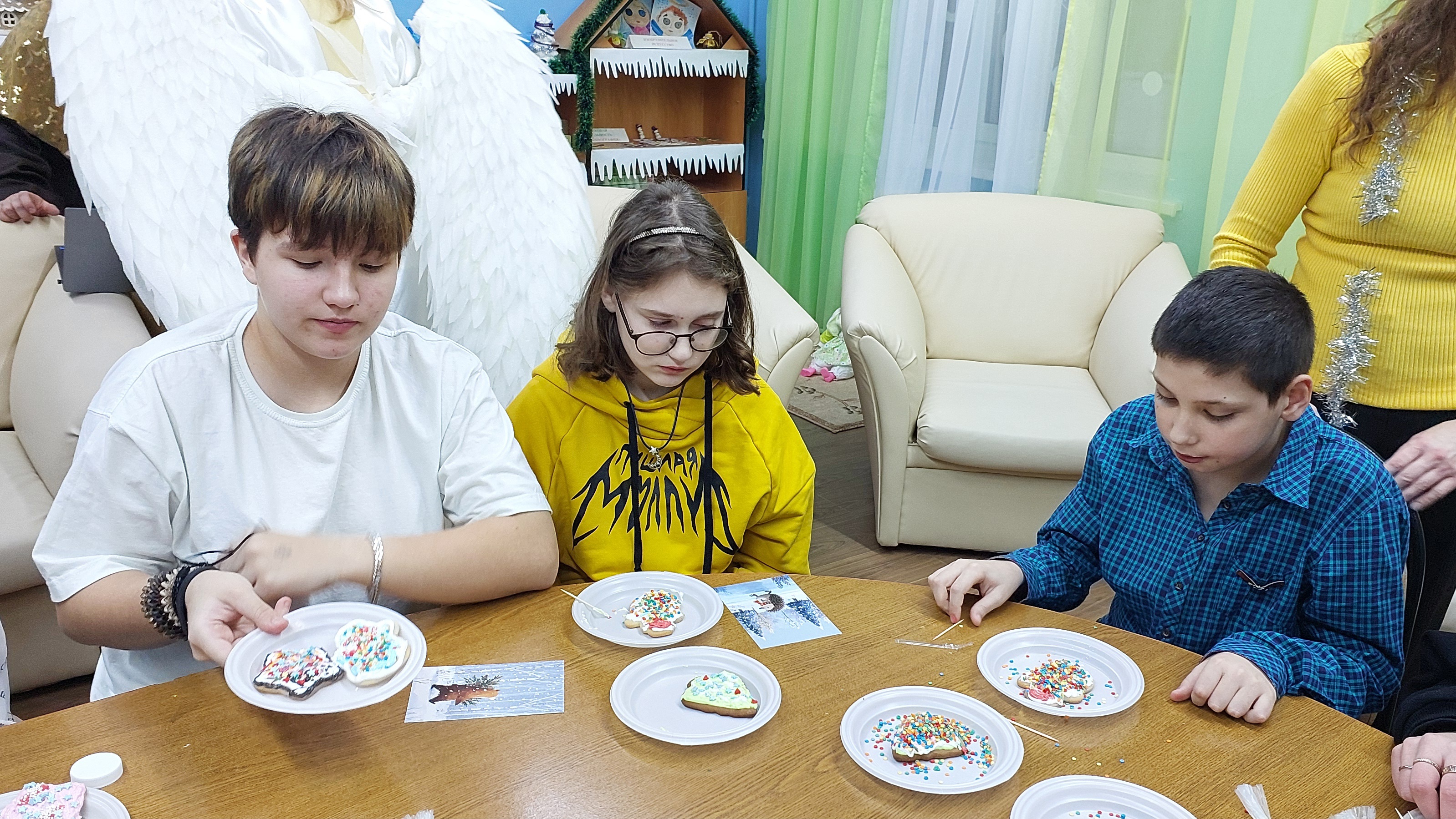 В отделении для детей с особенностями развития прошёл вкусный мастер-класс по росписи пряников. Организатор события — Филина Юлия Александровна, вдохновила группу единомышленников присоединиться к созданию новогоднего настроения для детей. Для ребят были подготовлены всевозможные принадлежности для творческой работы: разнообразные пряничные заготовки, разноцветная глазурь, инструменты для нанесения рисунка и даже специальная посыпка для декора. Под чутким руководством взрослых участники мастер-класса смогли проявить свою креативность и создать настоящие произведения искусства. Особенностью этого мероприятия стало создание атмосферы настоящего зимнего праздника. Дети узнали о традициях русской кухни и истории пряничной выпечки. Многие впервые попробовали себя в роли художников-конфетчиков, создавая праздничные композиции на поверхности пряников. Помимо творческого опыта, каждый ребёнок получил незабываемый сюрприз — настоящий праздничный подарок. Этот элемент программы подчеркнул важность заботы и внимания к каждому ребёнку. Подобные инициативы способствуют развитию творческих способностей, расширению кругозора и воспитывают чувство гордости за национальные традиции.