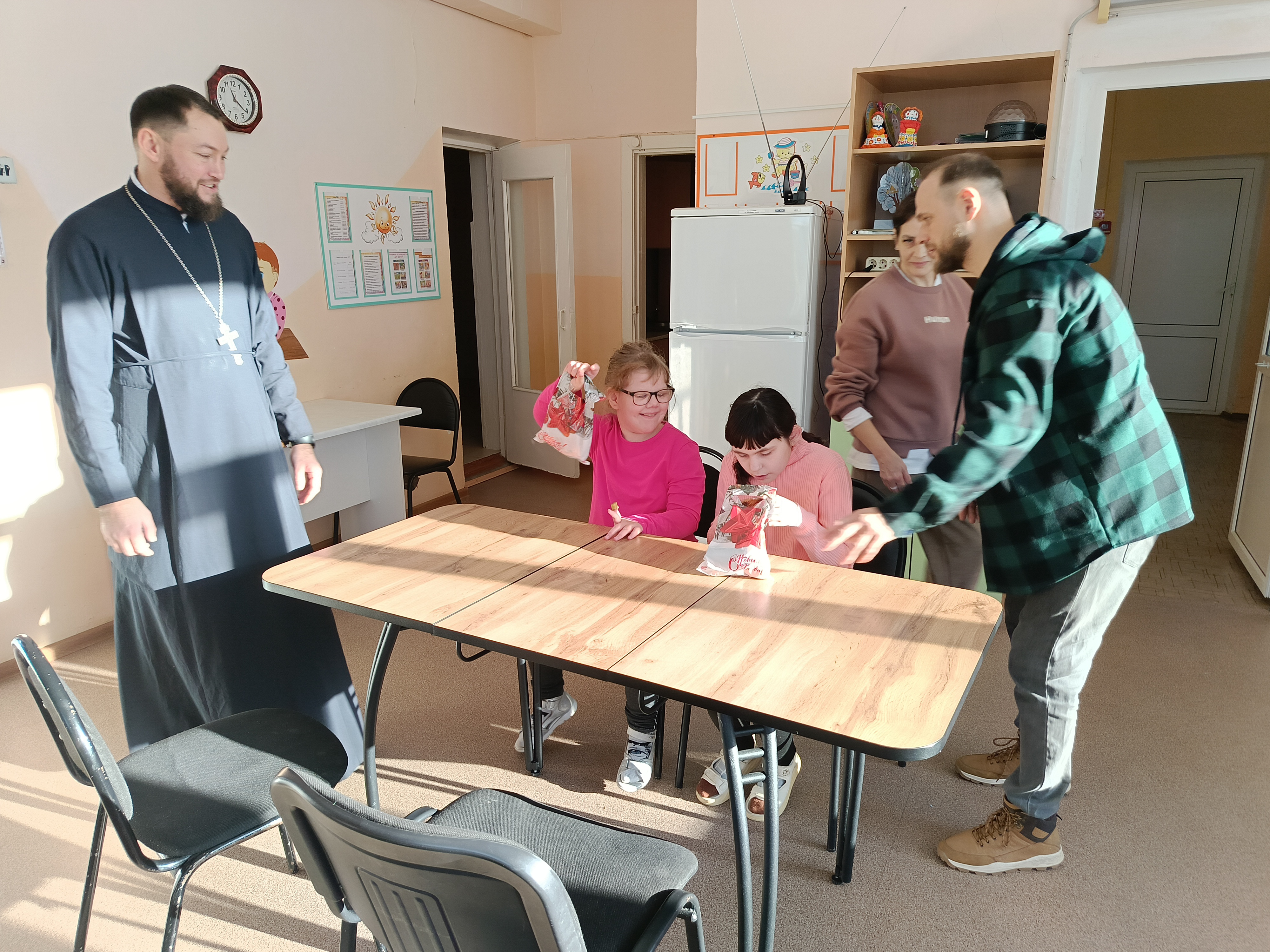 16 января член попечительского совета Благотворительного фонда «Добрый Кузнецк» Антон Королев и руководитель миссионерского отдела Кузнецкой епархии, иерей Сергий Галий, посетили Кузнецкий филиал ГБУ ССЗН «Областной социально-реабилитационный центр для детей и молодых инвалидов». Волонтёры пришли не с пустыми руками: ребятам постарше подарили большие сладкие наборы от мебельной компании «Элна», а для самых маленьких фонд закупил свежие яблоки. Кроме того, чайные наборы получили ребята из специальной группы молодых инвалидов от отца Сергия. Искренние улыбки, трогательные объятия, детский радостный смех и добрые слова батюшки, мы уверены, надолго останутся в сердцах не только волонтёров и воспитателей, но и самих ребят. Выражаем благодарность мебельной компании «Элна» за замечательные подарки детям.