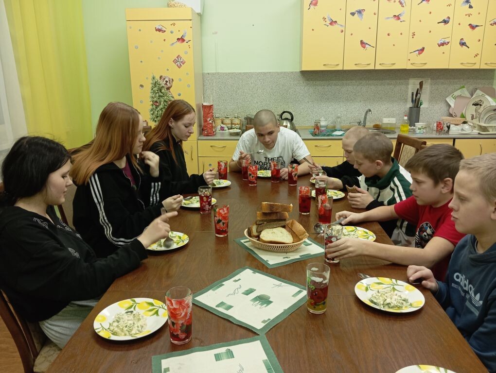 Президент Российской Федерации Владимир Владимирович Путин подписал Указ о проведении в 2026 году Года единства народов России в целях укрепления национального единства, мира и согласия между народами Российской Федерации. 12 февраля объявлен Днем Белорусской кухни в России. Воспитанники отделения социального приюта приглашают Вас на мастер-класс по приготовлению салата "Молодость" и "Кулаги смородиновой". Как приготовить салат «Молодость» от Лукашенко? Потребуются всего три ингредиента: зелёный лук, огурцы и сметана. Перья лука Лукашенко советует нарезать небольшими полосками около одного сантиметра. Затем их нужно довольно активно размять. Так, по мнению Лукашенко уходит вся лишняя горечь. Затем к зеленому луку он добавляет натертый соломкой огурец. Причем лук — это основная составляющая салата, его должно быть много. Заправляется блюдо сметаной. Ещё по вкусу можно добавить зелень и морскую соль. Также президент Белоруссии рекомендует по желанию добавить к блюду сваренное вкрутую и натертое на терке яйцо. "Кулага по-белорусски" - старинный десерт, напоминающий кисель, но в качестве загустителя используется не крахмал, а ржаная мука. Кулага по-белорусски готовится практически из любых свежих или замороженных ягод. Ужин, приготовленные ребятами с любовью, получился вкусным, витаминным и ароматным. Приятного аппетита!