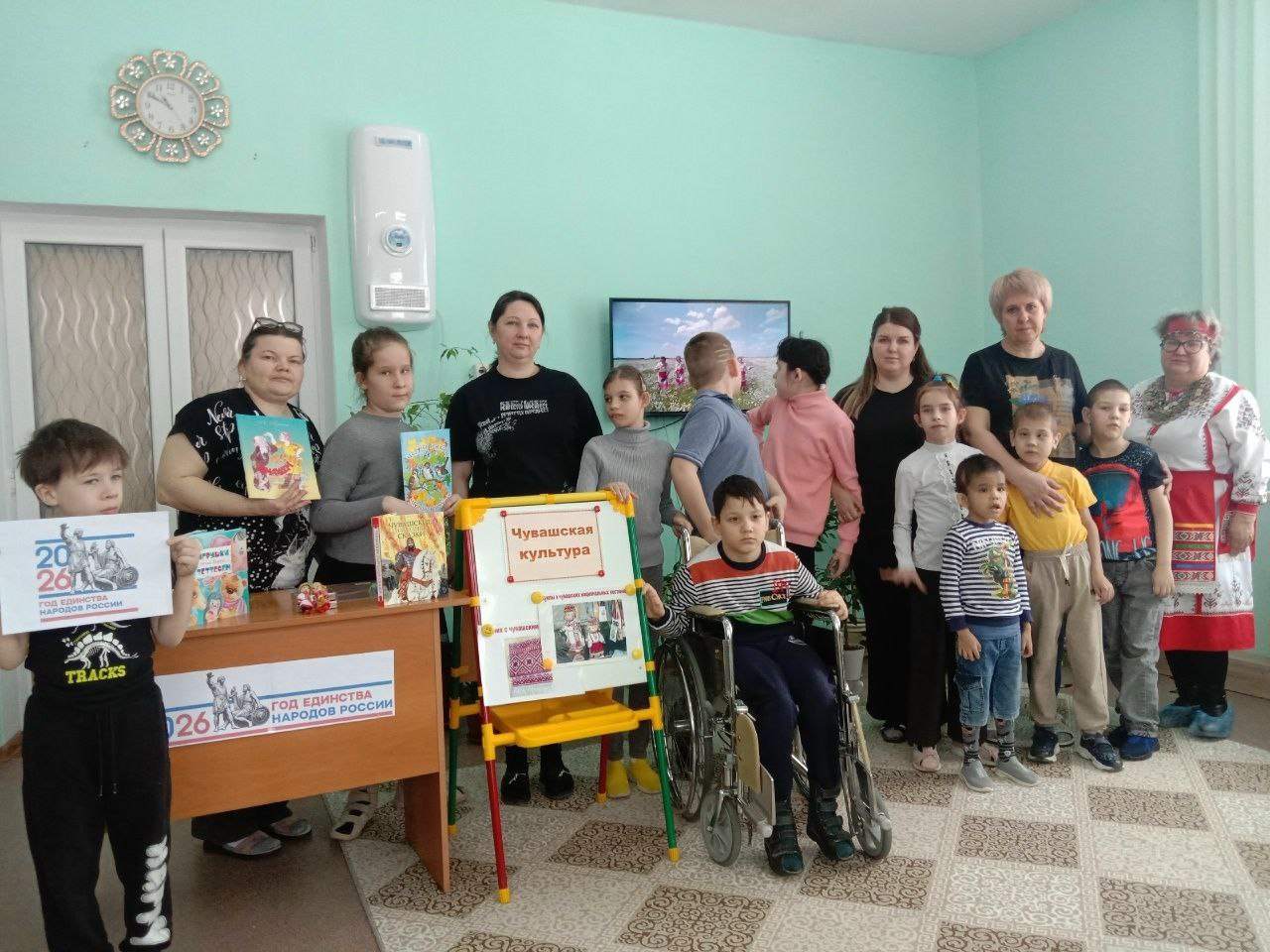 Педагогический коллектив Кузнецкого филиала в рамках "Года единства народов России" начал знакомить детей с историей и культурой народов Пензенской области. 12 февраля ребята приняли участие в интерактивном часе «Чувашская культура». Мероприятие организовала Т.В. Серякова, сотрудник филиала № 9 МБУ «Кузнецкая ЦГБ им. А.Н. Радищева». Участники узнали об элементах чувашского костюма: кебе, сапун, масмак, шюлькеме (мониста), а также о традиционных узорах, украшающих национальную одежду. Особый интерес вызвали куклы в национальных костюмах и, конечно, мониста – нагрудное украшение из серебряных монет. Ребята посмотрели короткие видеоролики и послушали чувашские песни в исполнении вокального коллектива «Кузнечаночка» и пензенских ансамблей. Ведущая продемонстрировала звучание чувашской речи, прочитав стихи А. Барто и А.С. Пушкина на чувашском языке.
