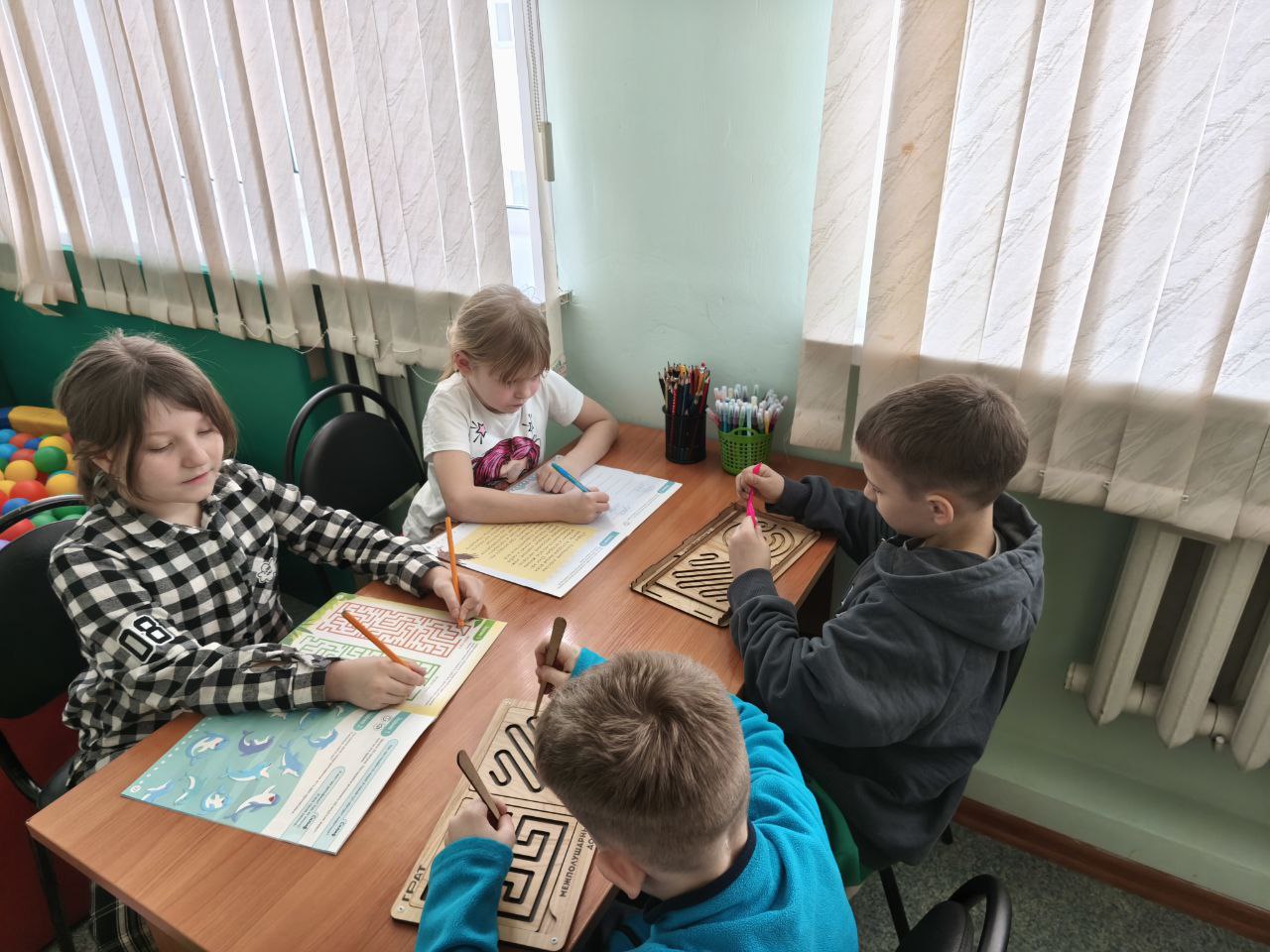 В отделении социального приюта педагог-психолог Ю.С. Графская проводит постоянные занятия по нейропсихологии. Эти занятия очень интересны и необычны. Нейропсихология - это наука, которая изучает особенности мозга и влияет на процессы психики. Хотя это молодая наука, но она приносит хорошие результаты в работе с детьми с тревожностью, эмоциональной нестабильностью. Кроме того, предметом работы нейропсихологии становятся не только концентрация и переключение внимание, но также речь, управлениями эмоциями, виды мышления, способность к самостоятельному принятию решений и возможность контролировать любую деятельность. На занятиях дети, выполняя задания, учатся тренировать свои когнитивные способности. Детям нравиться, что упражнения просты в исполнении и результат виден сразу. Также важно, что дети после занятия не только позитивно заряжены, но и готовы применять новые навыки в учебе и в дальнейшей жизни!
