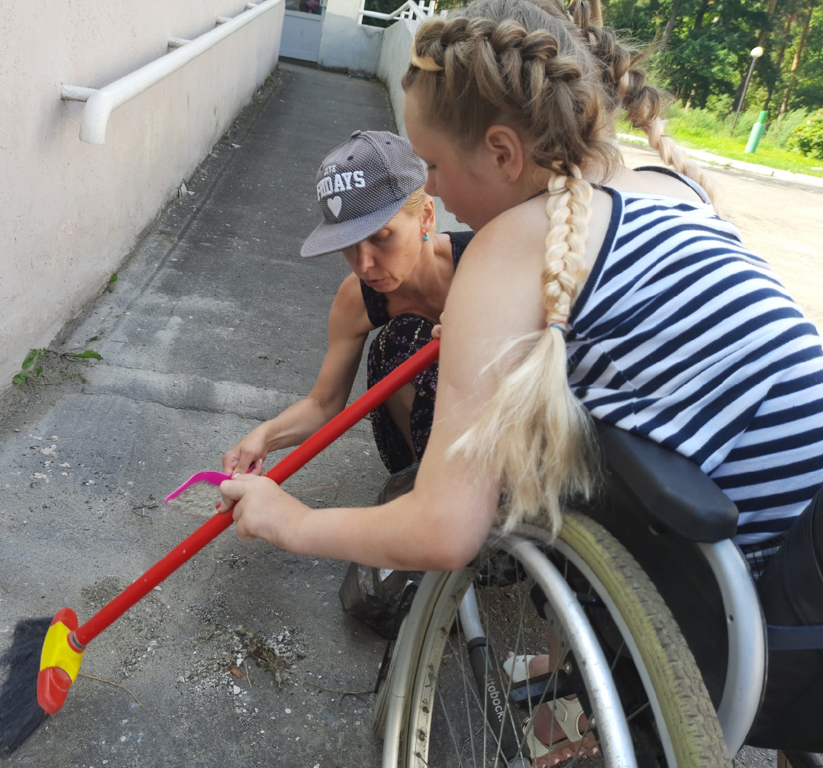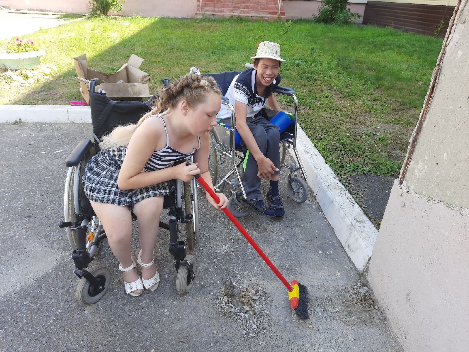 Напрасно возвращение трудового воспитания вызывает много споров. Это одно из важнейших направлений в работе с детьми для всестороннего развития личности. Дети обычно очень активны. И доступный возрасту труд отвечает потребностям ребенка быть в действии. Вот, к примеру, воспитанники отделения для детей с физическими недостатками подметали крыльцо, собирали мусор на территории. Затем мыли батут, на котором сами же потом и прыгали. Каждый из ребят участвовал в уборке по мере своих возможностей и сил. При этом настроение у всех оставалось отличным. Так происходит постепенное приобщение детей к труду и самостоятельности.