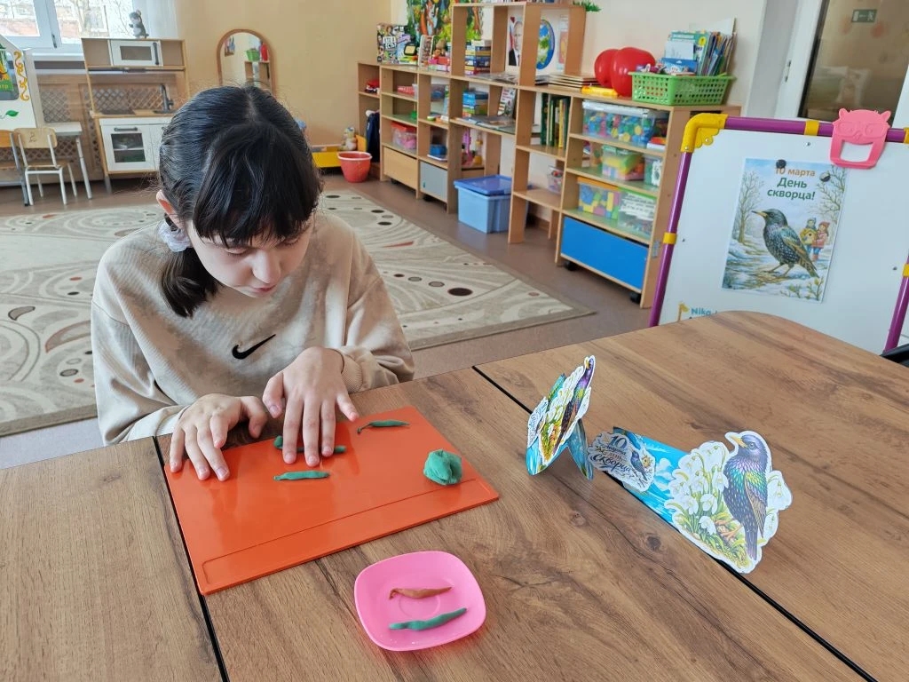 Весна приходит в наш город не только с капелью и теплым солнцем, но и с первыми птицами. Воспитанники Кузнецкого филиала под руководством воспитателя Асановой Газяль Гаясьевны решили не пропустить это важное событие и отправились в увлекательное путешествие в мир перелетных птиц. Ребята узнали главный весенний секрет: оказывается, сначала прилетают скворцы-разведчики, и только через неделю появляются скворчихи! А дальше начинаются настоящие хлопоты по поиску жилья — будь то уютное дупло или новый скворечник. Но главное — это помощь птицам. Чтобы накормить проголодавшихся после долгой дороги пернатых, дети слепили для них аппетитных «веселых червячков». А чтобы почувствовать себя настоящими птицами, ребята поиграли в игру «Тактильные перышки» и даже устроили соревнования по дыхательному упражнению «Пёрышко лети»: чье перышко продержится в воздухе дольше? Время пролетело незаметно. Рассматривая сезонное дерево, дети закрепили приметы весны, а в конце занятия создали своими руками яркую аппликацию «Скворец». Такие занятия дарят детям не просто новые знания, а учат их видеть прекрасное в мелочах, сопереживать и заботиться о братьях наших меньших.