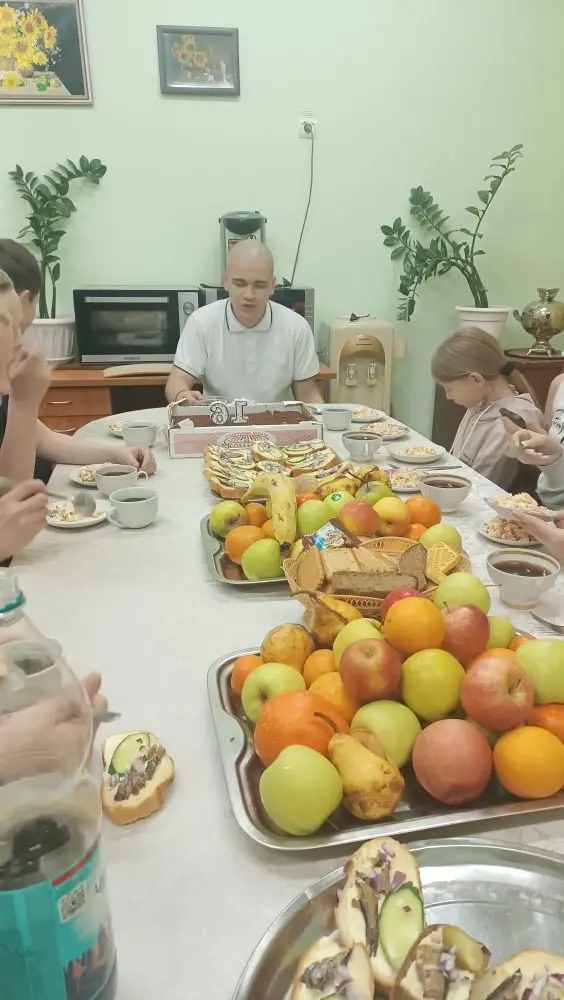 Теплый праздник в стенах отделении социального приюта. Сегодня, 16 марта 2026 года, в нашем отделении социального приюта прошел особенный день – один из наших воспитанников, Захаров Евгений, отметил свой день рождения. Это событие стало настоящим праздником для всех детей! Атмосфера радости и тепла воспитанники и педагоги собрались вместе в зале, где царила атмосфера дружбы и заботы. Для воспитанников был был накрыт праздничный стол, а для виновника торжества приготовлен вкусный торт украшенный свечами, символизирующими каждый прожитый год. Дети подготовили трогательные поздравления и подарки, выражая свою любовь и поддержку.