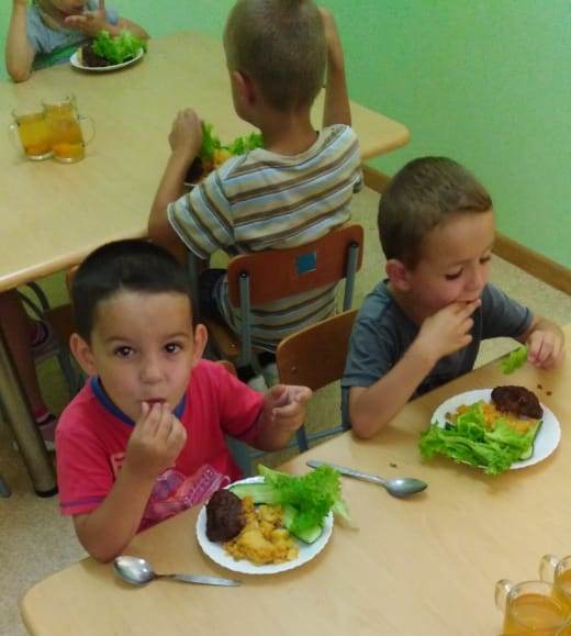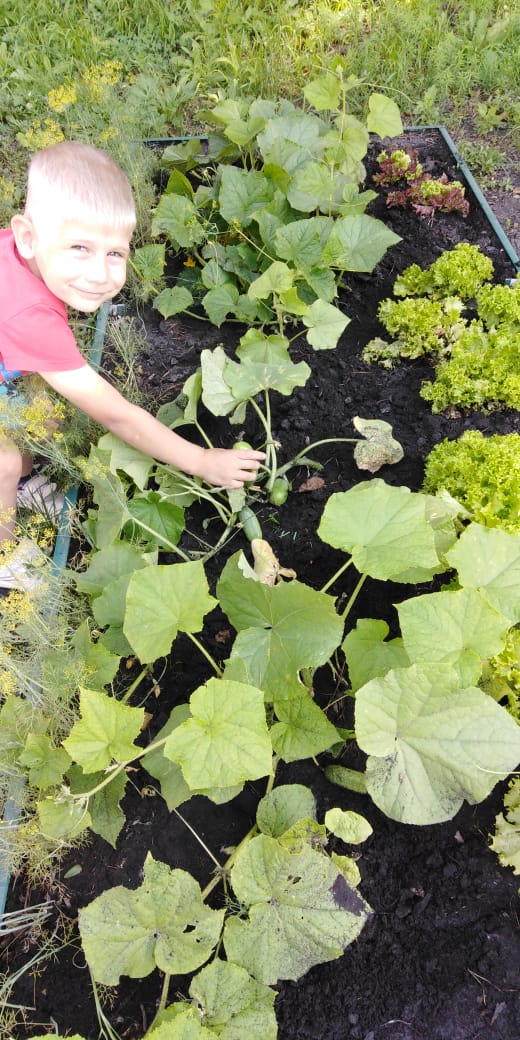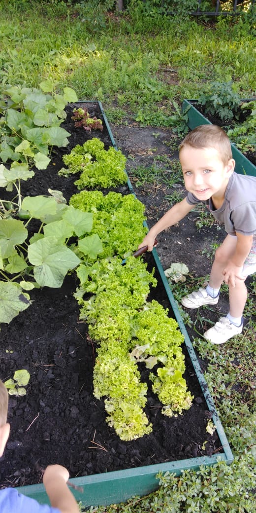 Наш трудовой десант под девизом: "Веселись, играй, огород не забывай!" даёт свои плоды. Ведь ничего не может сравниться с зеленью и овощами, сорванными с грядки, когда каждый листик несет в себе энергию бодрости, качества, вкус и аромат свежести. Воспитанники отделения социального приюта собрали урожай огурцов, помидоров и зеленый листовой салат. И все это попробовали за обедом. Сколько же было радости у ребят, особенно у малышей. Приятного аппетита!!!