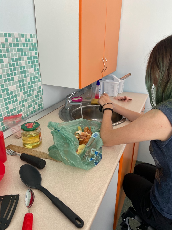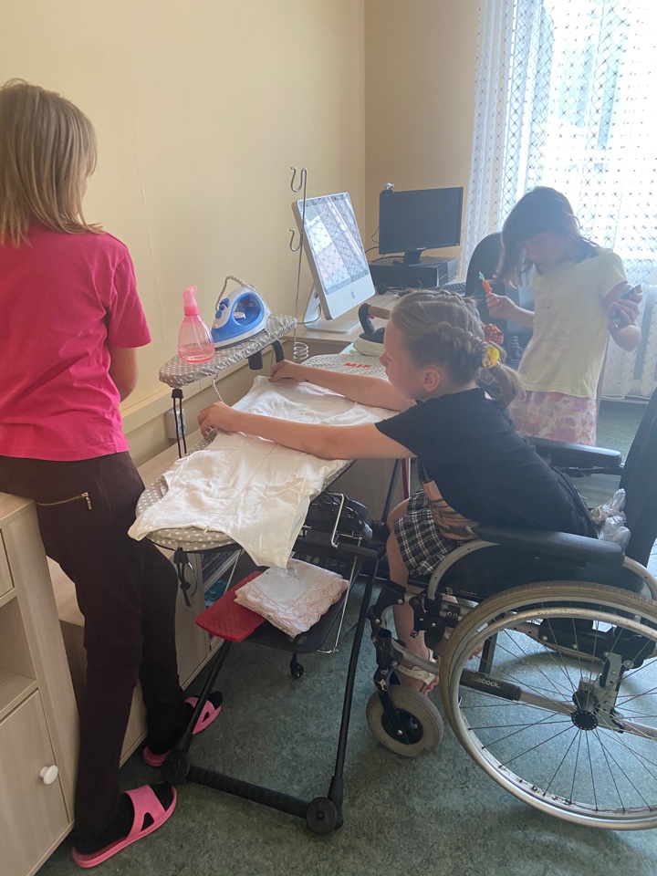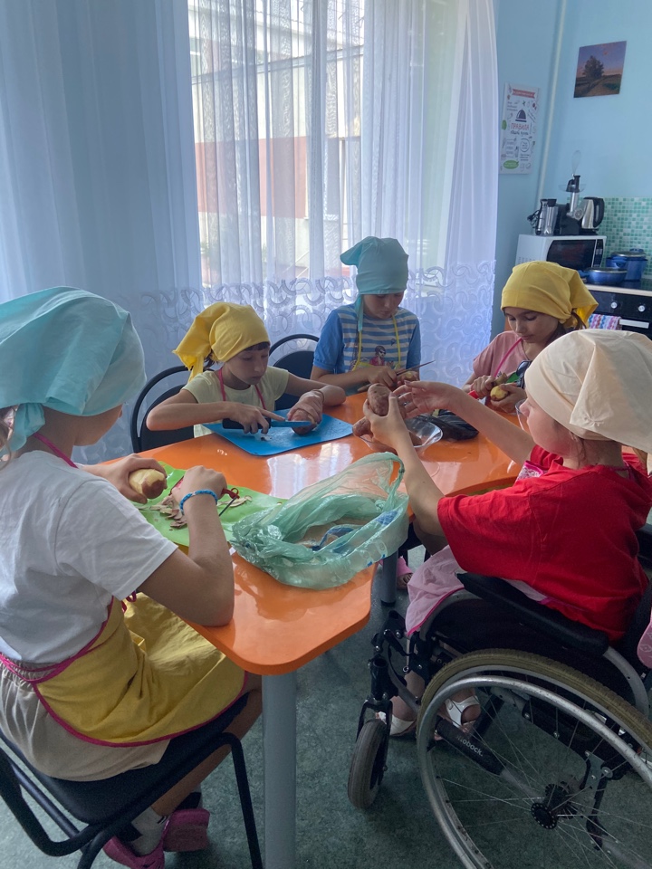 На базе ГБУ ССЗН "Областной социально реабилитационный центр для детей и молодых инвалидов" функционирует учебно-тренировочная квартира, где проводятся занятия по социально-бытовой адаптации для детей с физическими недостатками и ограниченными возможностями здоровья. Вот и сегодня несовершеннолетние из отделения с физическими недостатками совместно с ребятами из стационарного отделения учились готовить второе блюдо "Картофель с овощами", узнали, что такое технологическая карта (ТК) для калькуляции и приготовления блюд, изучили методы термической обработки продуктов. Девочки, как настоящие хозяйки, познакомились с тонкостями пользования утюгом, с соблюдением правил техники безопасности, выгладили после стирки свои фартуки для будущих занятий и платья для прогулки. Квартира полностью оборудована к доступной среде для детей-инвалидов, что облегчает обучение и подготовку к будущей самостоятельной жизни.