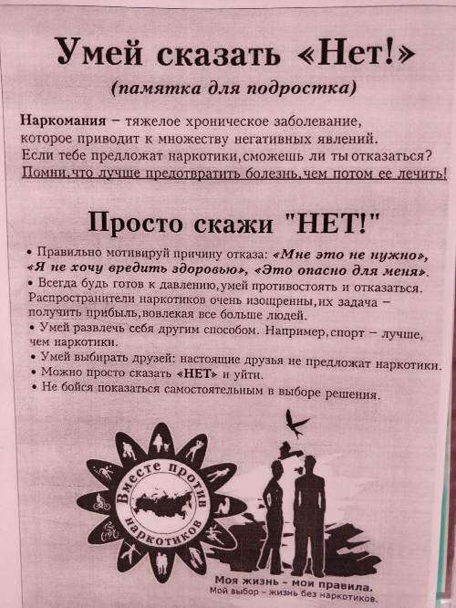 В рамках областной антинаркотической акции "Сурский край – без наркотиков!", 16.08.2021 в отделении социального приюта была проведена беседа "Умей сказать "Нет" и организован просмотр и обсуждение фильма "Что мы знаем о вреде ПАВ, алкоголя и табакокурения". Общение с ребятами прошло в неформальной обстановке, в форме беседы. Особое внимание уделили профилактике наркомании, употребления наркотических средств, психотропных веществ, курительных смесей. Проинформировали детей о воздействии этих веществ на организм человека, об основных симптомах их употребления. Кроме того, ребятам были разъяснены различные виды юридической ответственности за совершение преступлений, связанных с распространением наркотических средств и психотропных веществ. Затем воспитанники просмотрели и обсудили видеоролик, высказали свое мнение. Всем ребятам раздали памятки "Умей сказать "Нет".