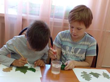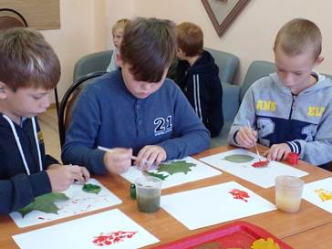 12.09.21 воспитанники отделения социального приюта ГБУ ССЗН "Областной социально - реабилитационный центр для детей и молодых инвалидов", в рамках занятий кружка "Зазеркалье" под руководством педагога Кануник В. И., познакомились с нетрадиционной техникой рисования "Печатание листьями". Эта техника развивает мелкую моторику, фантазию, мышление, интерес к творческой деятельности. Ребята во время прогулки собрали листья с разных деревьев, кустарников и засушили их. Работа по освоению новой техники изобразительного искусства доставила всем участникам массу положительных эмоций и дало возможность создать композицию "Здравствуй, осень золотая!".