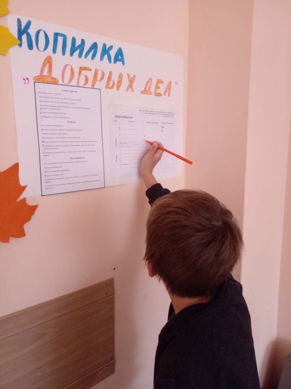 20.10.2021 в отделении социального приюта день начался с "Утреннего рефлексивного круга". Воспитанники сами выбирали старших по комнатам, дежурных по столовой, придумали оценочные символы и оформили стенд. На протяжении всего дня старались делать только "Добрые дела": разобрали гардероб, поливали цветы, помогали убирать мусор от ремонтных работ. На "Вечернем рефлексивном круге" подвели итоги дня.