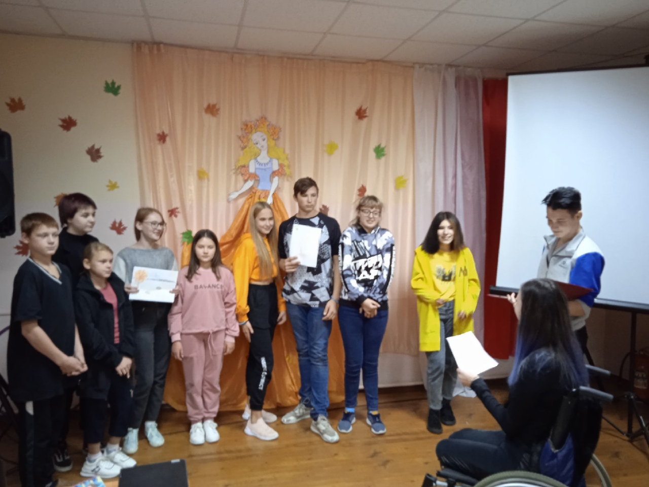 20 октября 2021 года в стационарном отделении ГБУ ССЗН "Областной социально - реабилитационный центр для детей и молодых инвалидов" прошло необычное мероприятие "Осенний балаган". Целью данного мероприятия является проявление инициативы, развитие творческих способностей детей, воспитание любви к природе, учить понимать осеннюю красоту, творчески подходить к решению поставленных задач. Детям было предложено самим объединиться в команды, подобрать название и определиться с капитанами. Под бурные аплодисменты ребята танцевали, участвовали в интересных конкурсах, угадывали загадки. В весёлой и дружной атмосфере несовершеннолетние расширили и углубили знания и представления об изменениях, происходящих в природе с приходом Осени. С незначительным перевесом победу одержала команда "Листопад". Все участники получили памятные призы и заряд хорошего настроения.