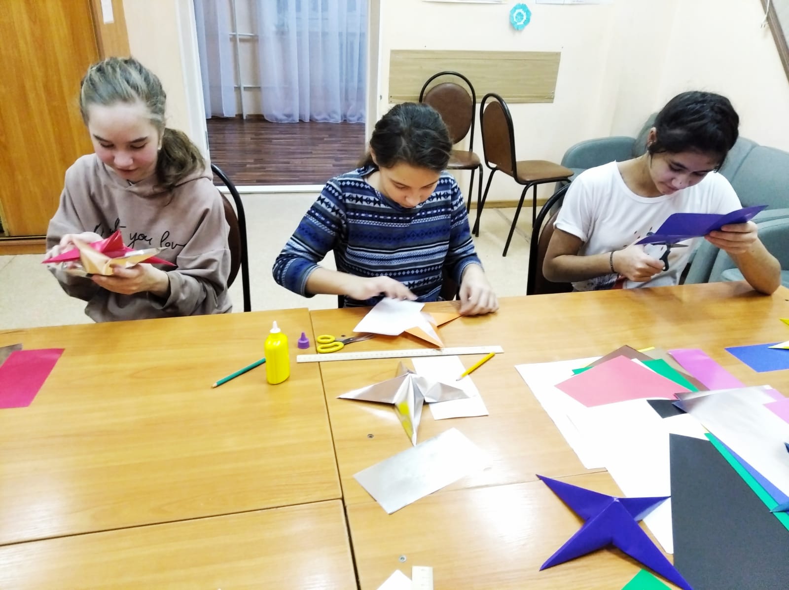 В ГБУ ССЗН "Областной социально - реабилитационный центр для детей и молодых инвалидов" 06.01.2022 в отделении социального приюта прошёл мастер-класс по изготовлению "Вифлеемской звезды". Ребята с интересом принялись за работу. Звёзды решили мастерить из бумаги. Получилось очень ярко и красиво! Изготовленные звёзды стали прекрасным украшением интерьера.