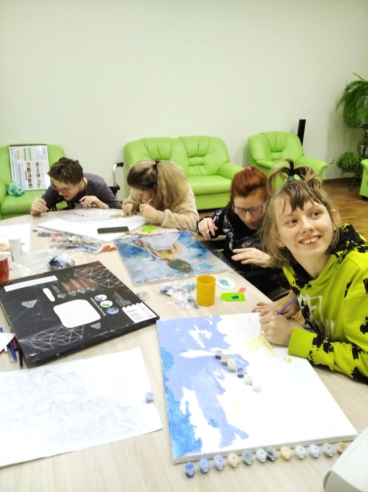 За окном падает снег, а у нас в отделении учебного (тренировочного) сопровождаемого проживания тепло и уютно. Все девчонки уверены, что любой человек способен рисовать картины, живопись по номерам стала самым популярным видом досуга. У многих получились красивейшие картины, которые приятно подарить знакомым и друзьям.