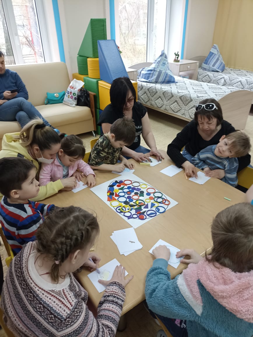 В преддверии праздника 22.04.2022 года в отделении дневного пребывания прошло мероприятие для родителей и детей «Светлая Пасха Христова». Специалисты отделения познакомили присутствующих с историей праздника: его символами и обычаями; совместно изготовили пасхальные поделки, украсили яйца, играли в игры. Была оформлена выставка рисунков. Родители и дети проявили себя очень творчески. А что может быть прекраснее совместного творения родителей и ребёнка!
