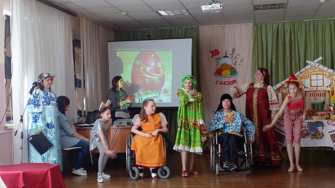 24 апреля 2022 года в ГБУ ССЗН "Областной социально - реабилитационный центр для детей и молодых инвалидов" прошло мероприятие, посвященное Светлой Пасхе. Поздравить ребят с праздником пришли отец Николай и семья: Руслан и Ольга. Отец Николай рассказал историю возникновения праздника, что символизируют яйца и кулич на Пасху. Свои таланты показали воспитанники Центра: прочитали стихи о Пасхе, показали сценки "Курочка ряба" и "Колобок", что оживило и украсило мероприятие. Программа была дополнена пасхальными играми: "Гори, гори ясно", "Ручеёк", "Кручение яиц". Затем гости поздравили всех с праздником Светлой Пасхи и раздали подарки. Закончилось мероприятие чаепитием с куличами.