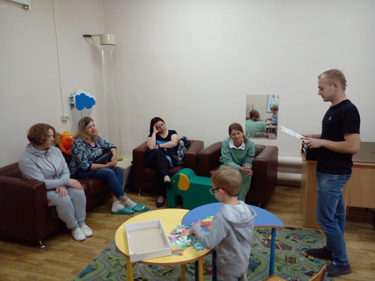 01.07.2022 в отделении дневного пребывания педагог- психолог Миненко А.С. провёл для родителей лекцию-практикум на тему: Формирование пространственно-временных представлений у детей. Алексей Сергеевич рассказал о значении формирования двигательных функций ребенка в процессе взаимодействия с окружающим предметным миром; продемонстрировал на практике основные эффективные способы развития пространственно-временных представлений у детей дошкольного возраста. В конце встречи родителям были розданы информационные буклеты по данной теме.