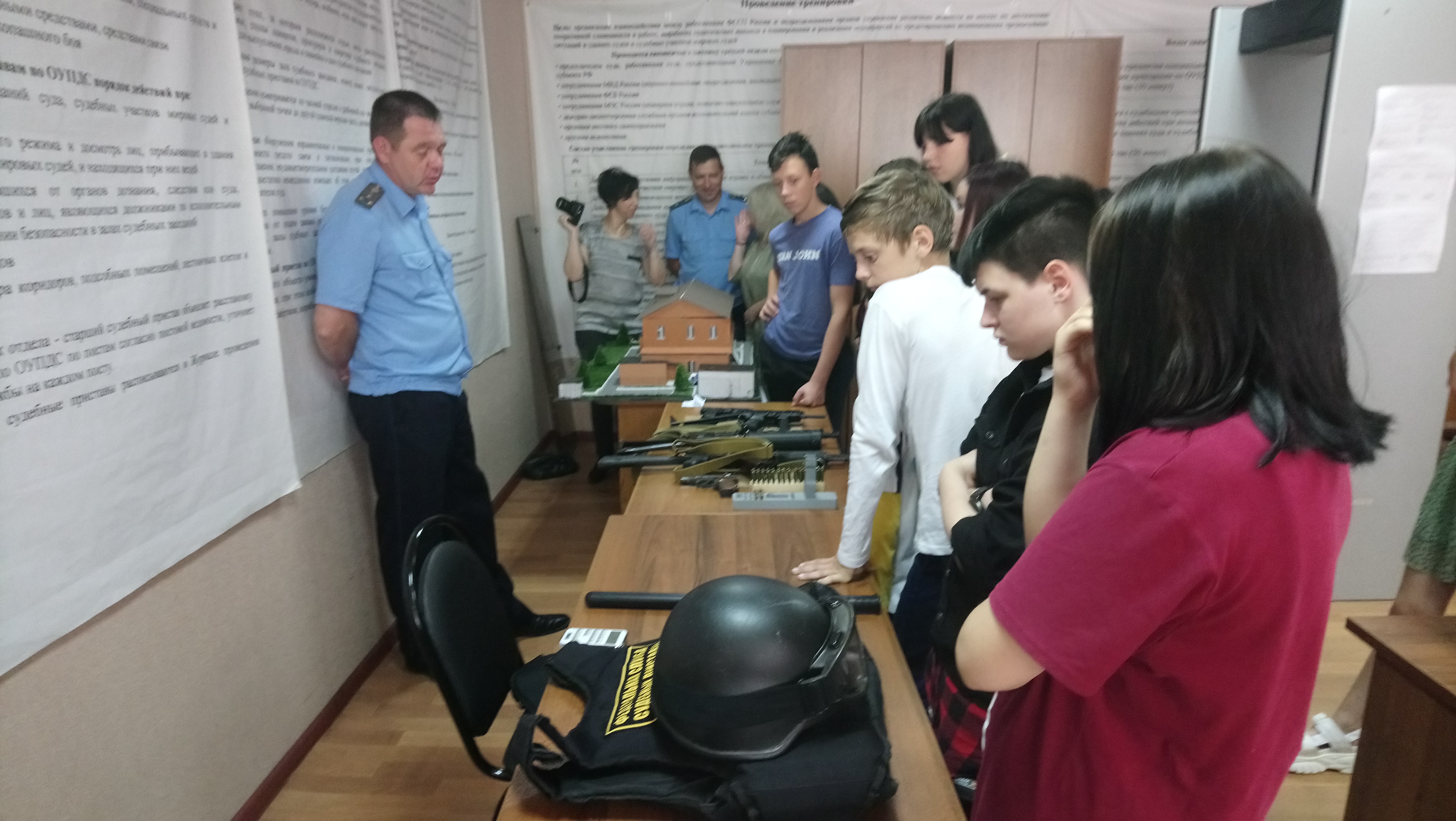 На первой экскурсии ребятам рассказали историю возникновения создания службы судебных приставов, показали современное оружие. Каждый ребенок смог попробовать собрать и разобрать оружие.