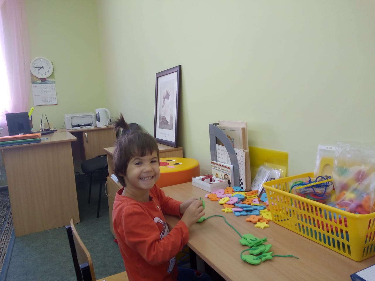 Медицинский психолог Сергацкова Ольга Владимировна проводит индивидуальные занятия с ребятами младшей группы отделения социального приюта.