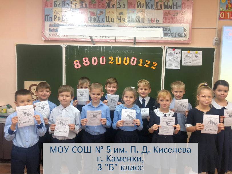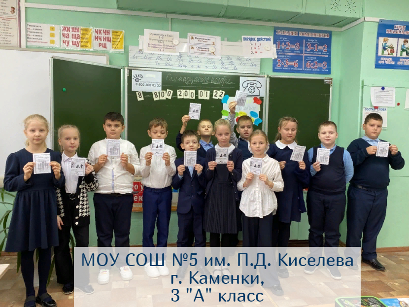 На сегодняшний день к Акции уже подключились 7 педагогов и 12 классов, а это 228 учеников г. Пензы и областных школ! Всем участникам были отправлены сертификаты и благодарственные письма, а самым первым участникам – школе № 59 г. Пензы – ещё и памятные сувениры с символикой Детского Телефона Доверия.