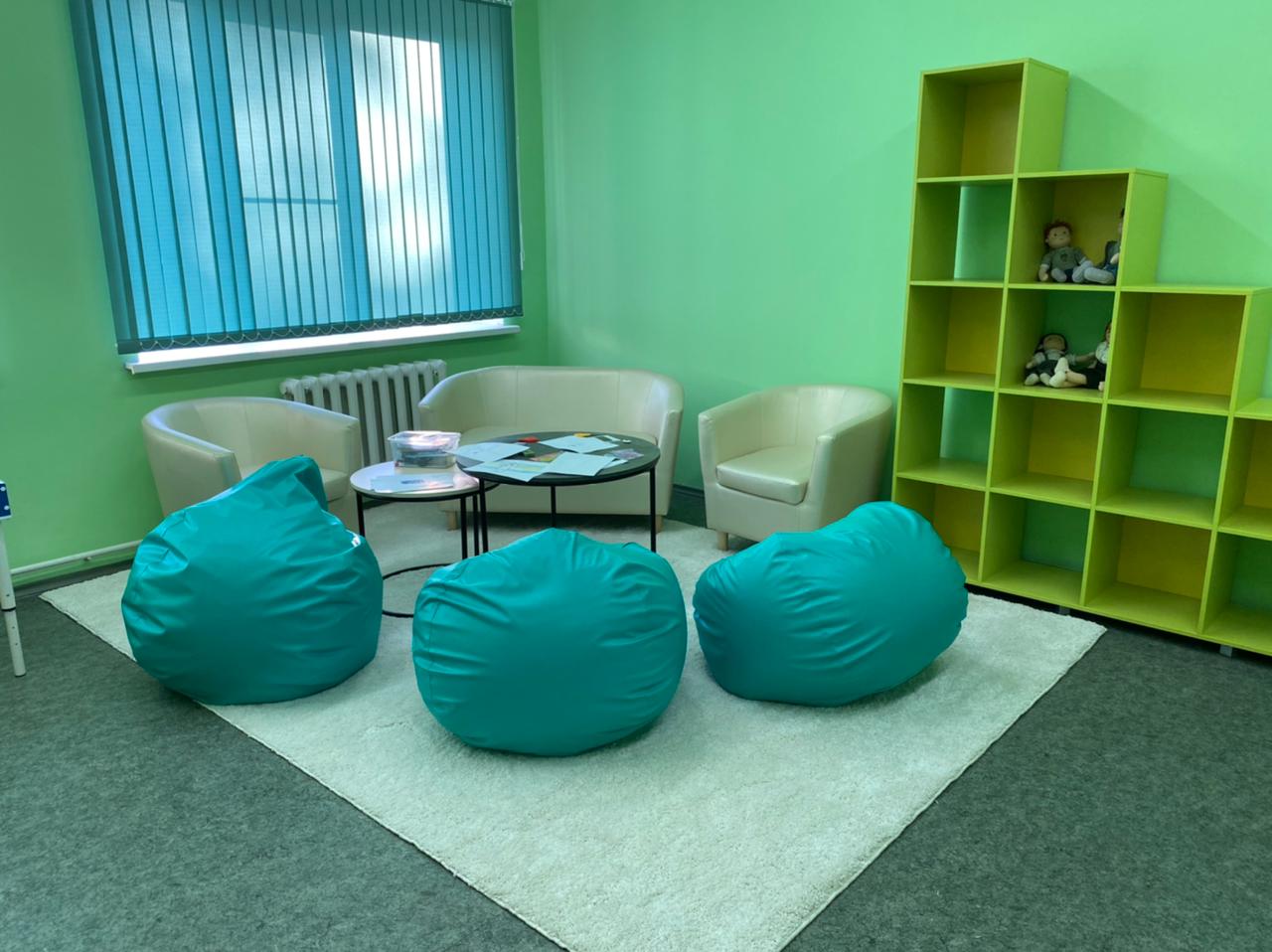 В декабре 2022 года по гранту Фонда поддержки детей, находящихся в трудной жизненной ситуации наш Центр получил современное оборудование и "Зеленая комната" для работы с детьми с психоэмоциональной травмой приобрела свой конечный вид. Теперь ребенок может расслабиться на кресле для релаксации, создать свою историю на песке, проработать негативные эмоции с помощью плакатов конструкторов эмоций, порелаксировать во время рисования в технике Эбру и многое другое. Комфортную обстановку для самораскрытия и самоанализа создают удобные кресла и мягкий ковер.