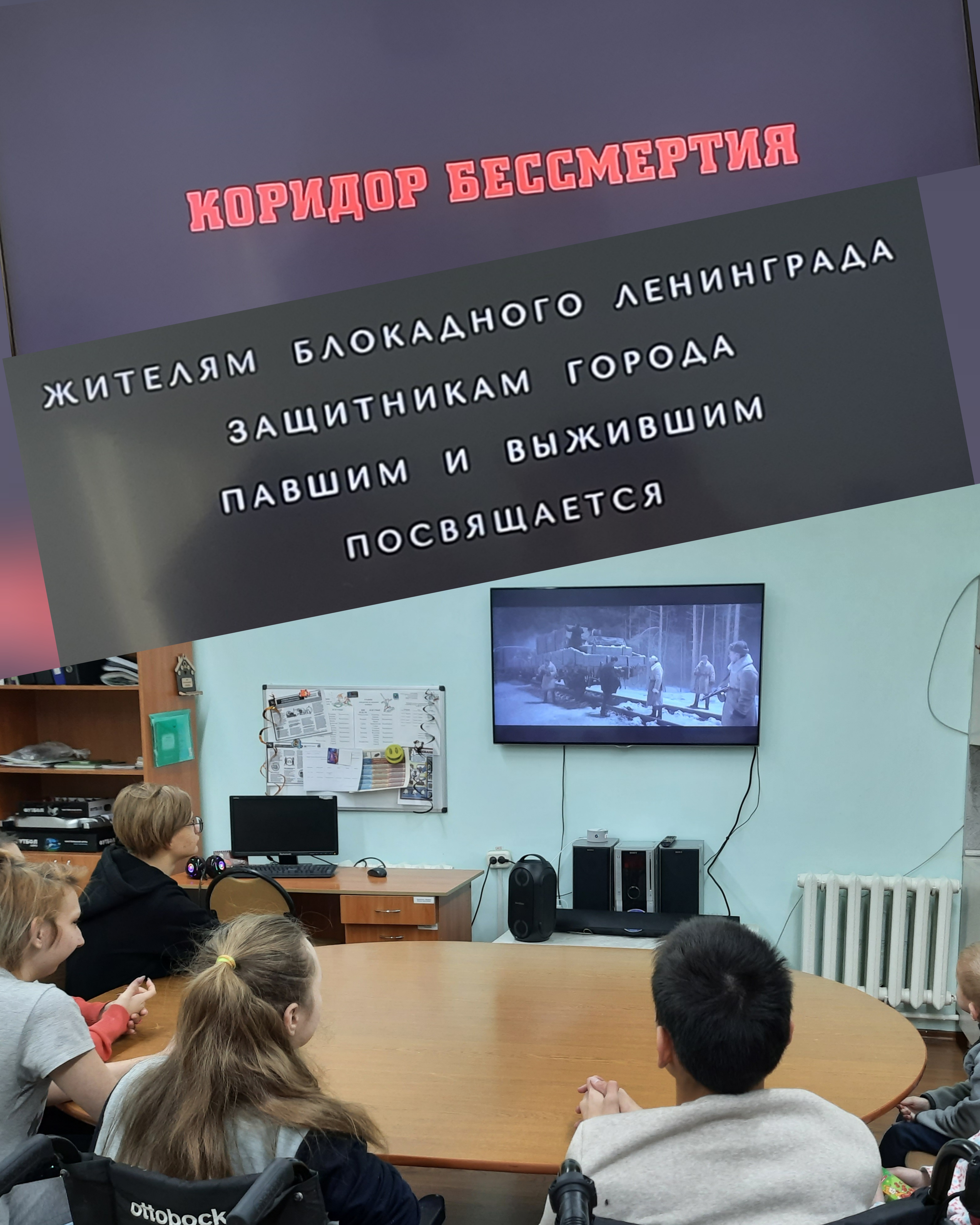 80 лет назад, 18 января 1943 года, было разорвано блокадное кольцо вокруг Ленинграда. О событиях тех времен рассказывает военная драма Ф. Попова "Коридор бессмертия". Ребята отделения для детей с физическими недостатками с просмотра этого фильма начали свое участие во Всероссийской акции "Блокадный хлеб".