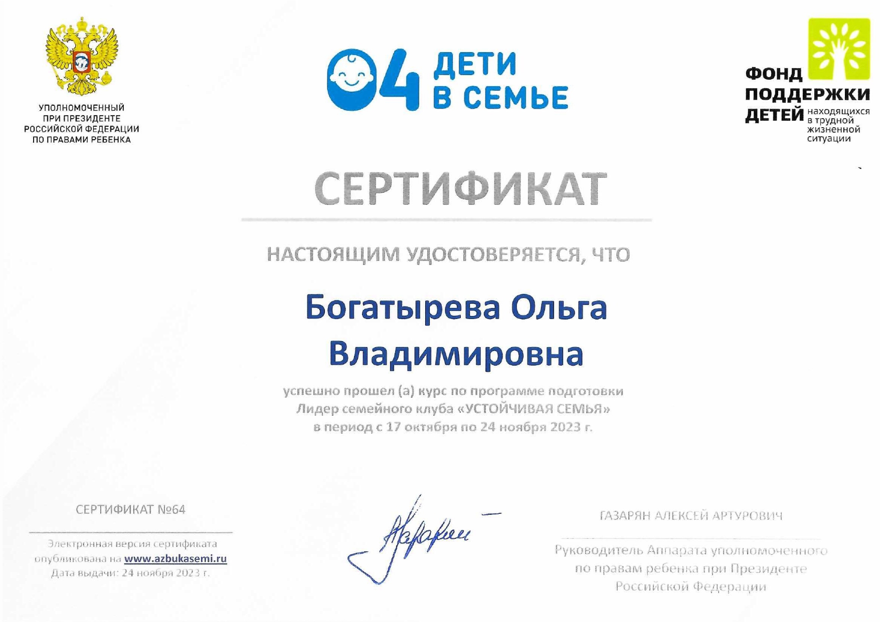 В декабре 2023 года психологи нашего Центра обучились по программе «Азбука счастливой семьи». Теперь наши специалисты смогут оказать квалифицированную помощь семьям в вопросах построения надежных отношений в семье; укрепления традиционных семейных ценностей; профилактики насильственных методов воспитания в семье; улучшения психоэмоционального состояния родителей. Главная задача реализации программы в том, чтобы дети оставались в семье, воспитывались с кровными родителями, имели возможность развиваться. По результатам обучения 4 психолога Центра Богатырева Ольга Владимировна, Аграфонова Надежда Николаевна, Кулаева Татьяна Сергеевна, Графская Юлиана Сергеевна получили сертификаты и стали лидерами семейного клуба «Устойчивая семья».